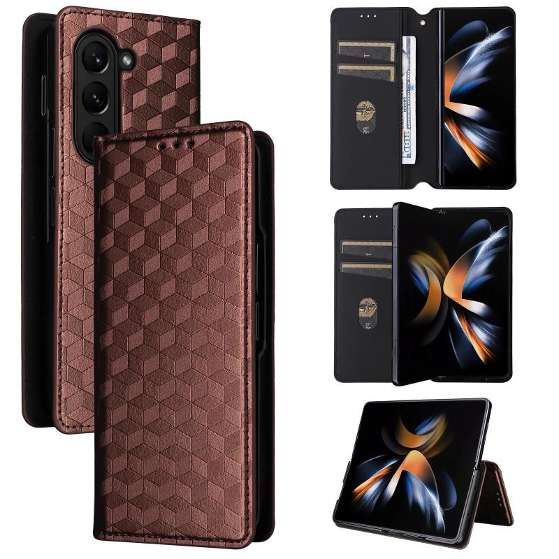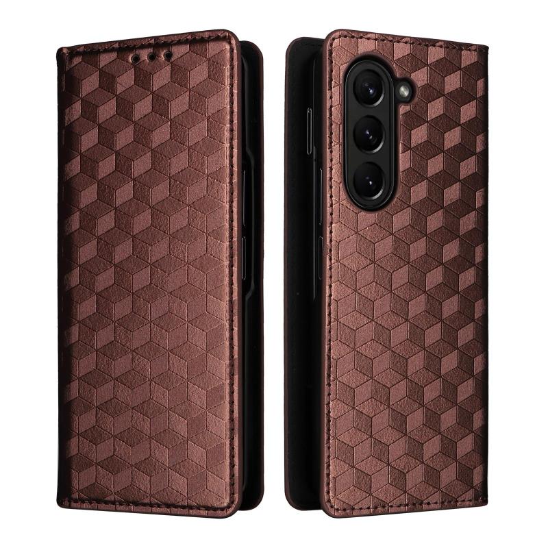 For Samsung Galaxy Z Fold5 Cubic Grid Texture Flip Leather Phone Case(Brown)