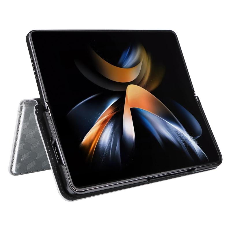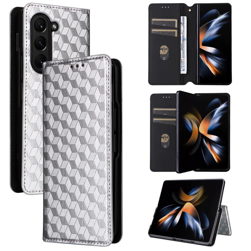 For Samsung Galaxy Z Fold5 Cubic Grid Texture Flip Leather Phone Case(Silver)
