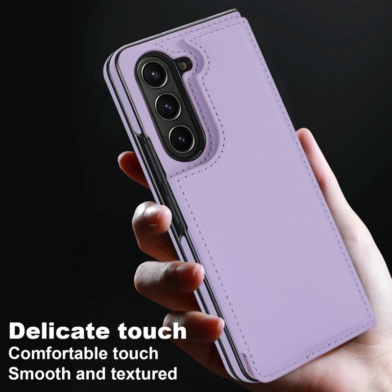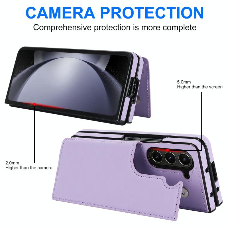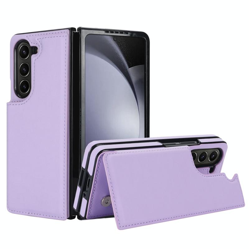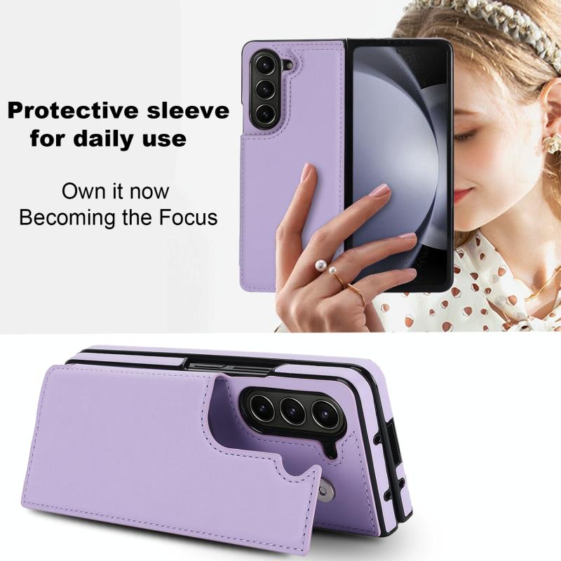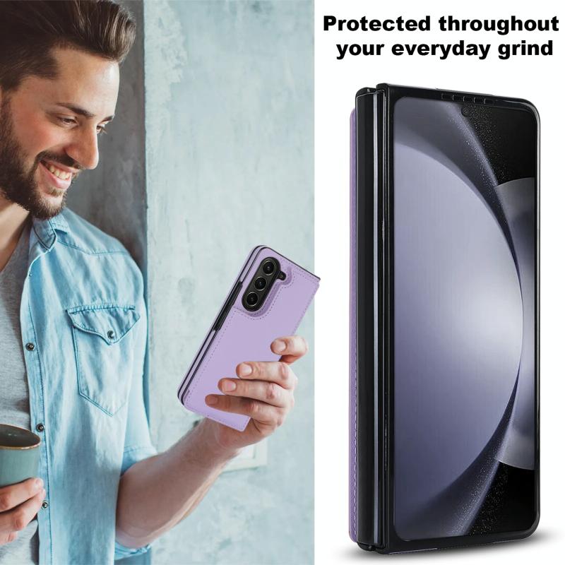 For Samsung Galaxy Z Fold5 Full Coverage Fold Double Buckle PU Phone Case(Purple)