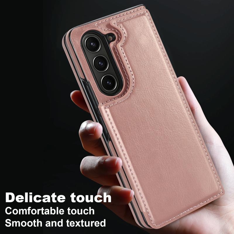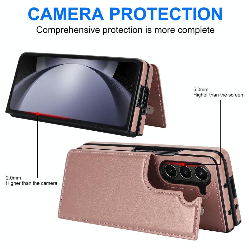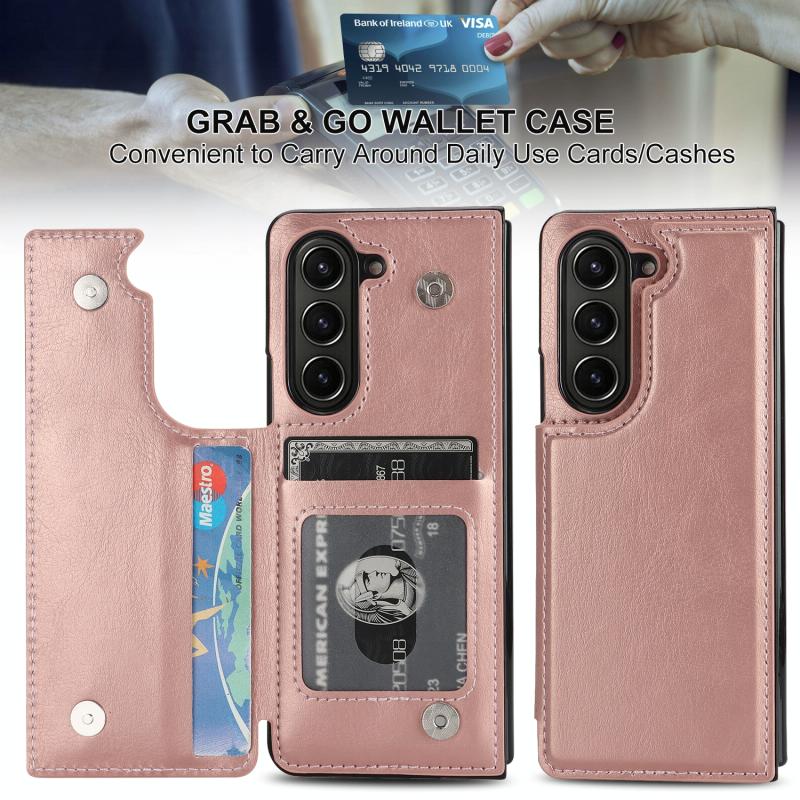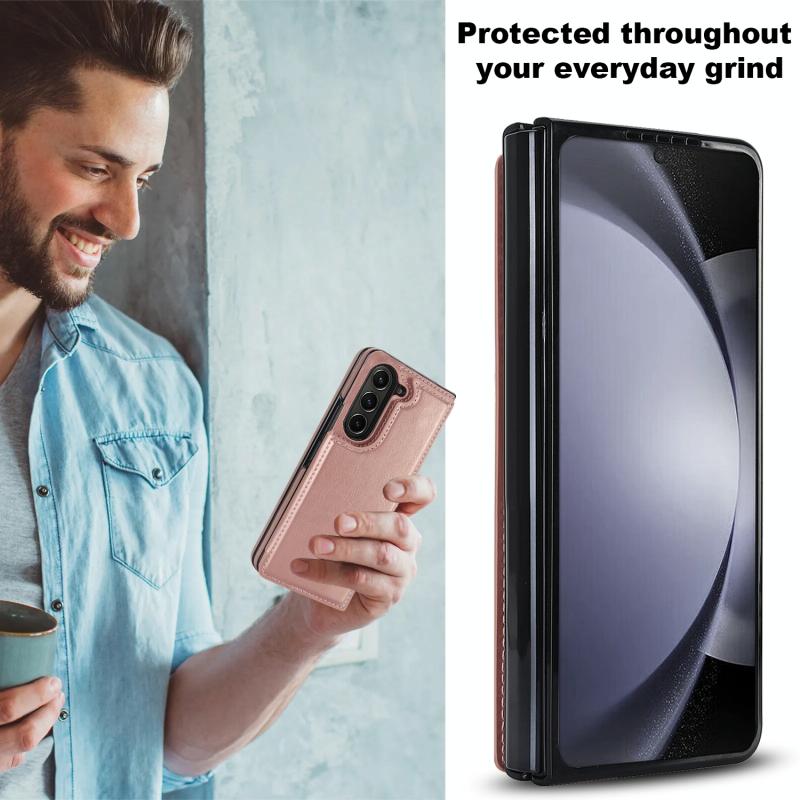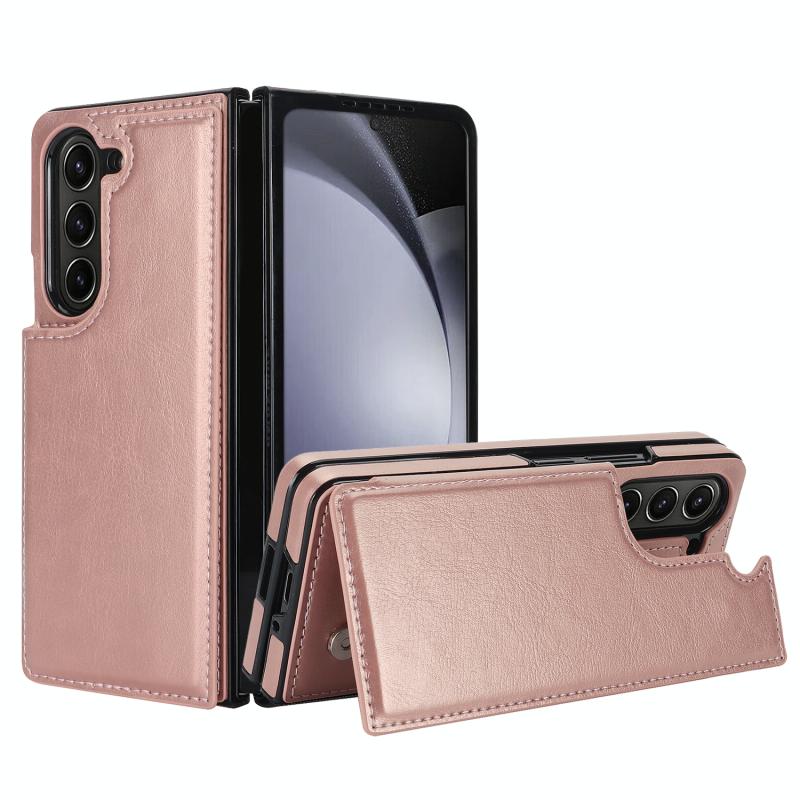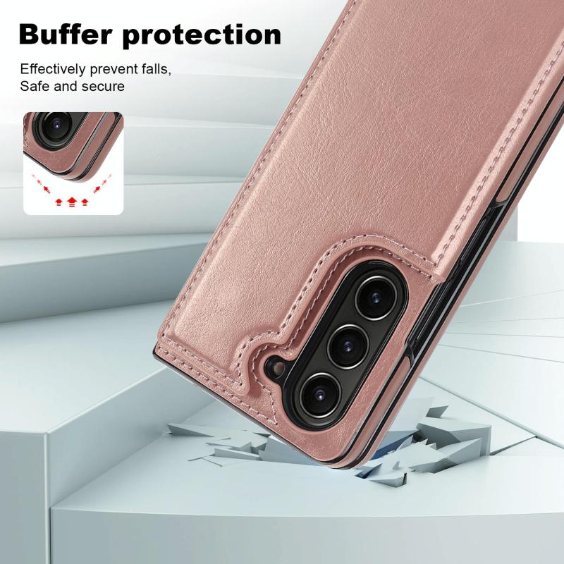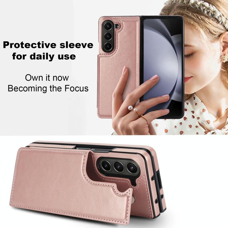 For Samsung Galaxy Z Fold5 Full Coverage Fold Double Buckle PU Phone Case(Rose Gold)
