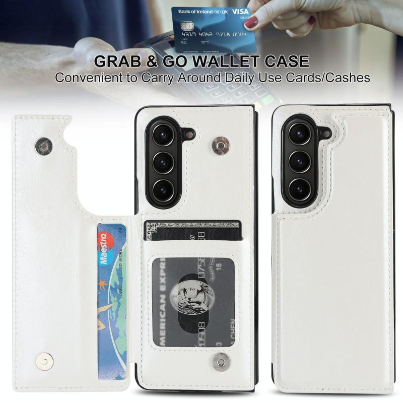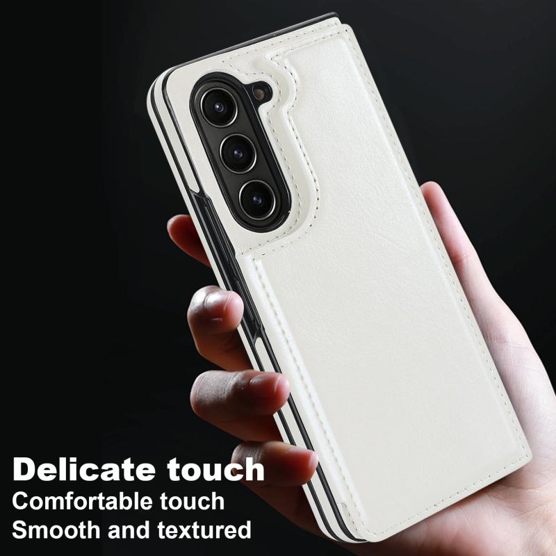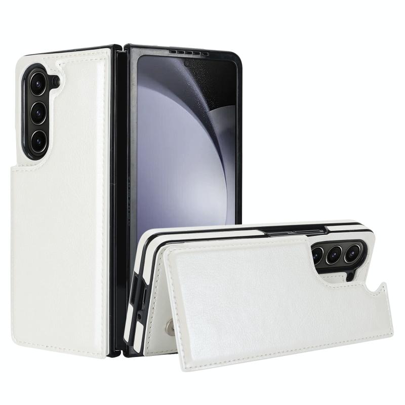 For Samsung Galaxy Z Fold5 Full Coverage Fold Double Buckle PU Phone Case(White)