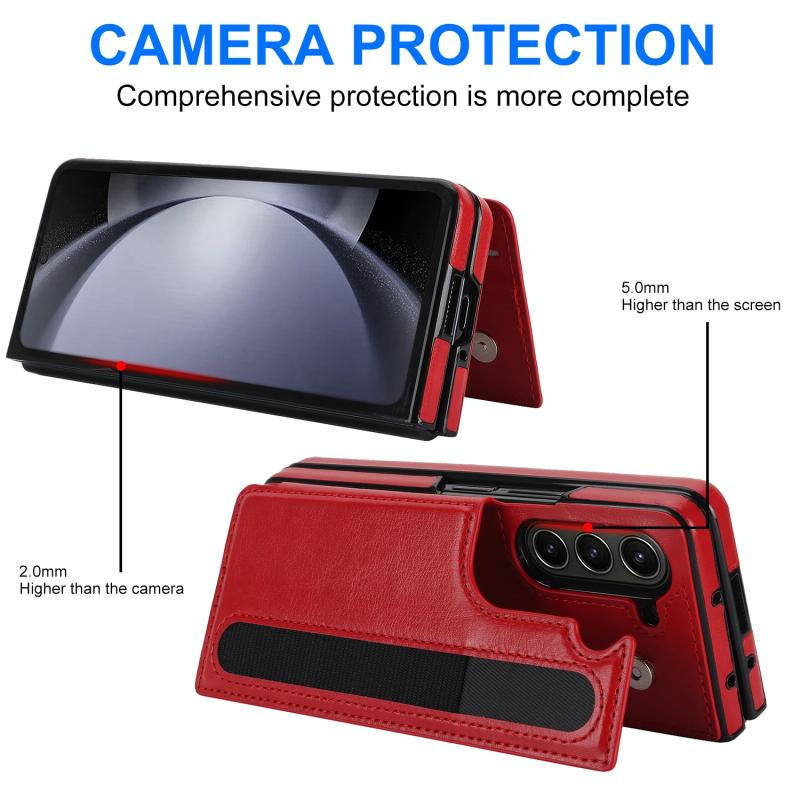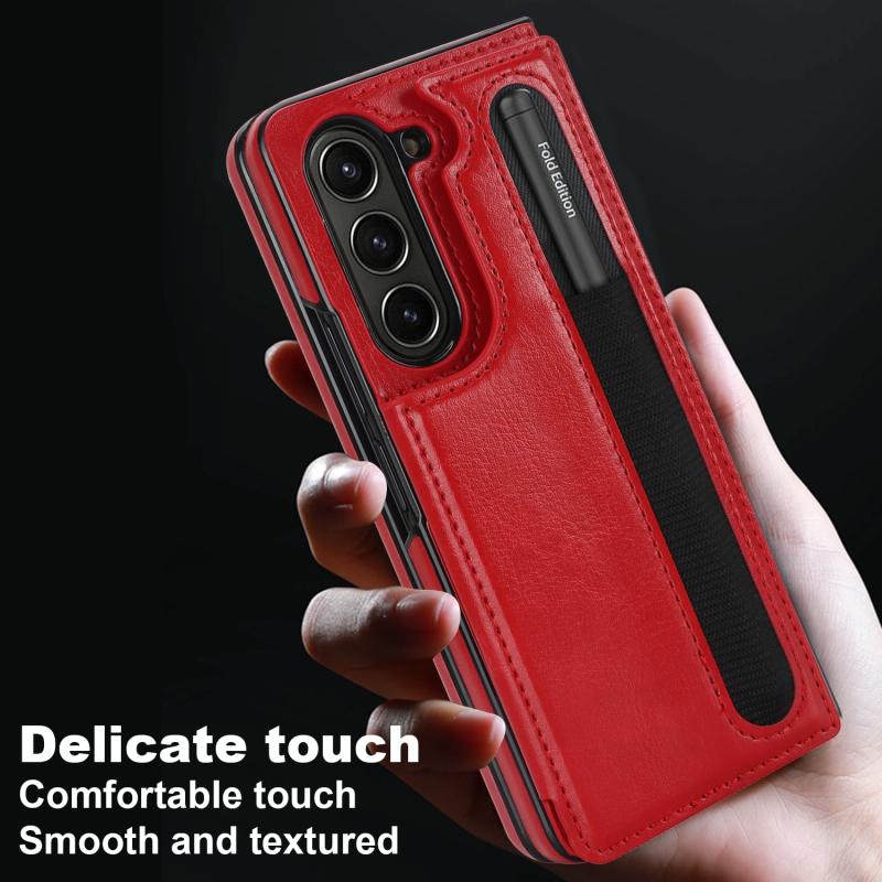 For Samsung Galaxy Z Fold5 Full Coverage Fold Double Buckle PU Phone Case with Pen Slots(Red)