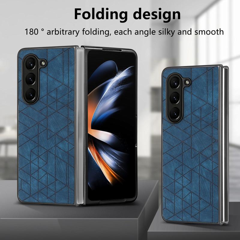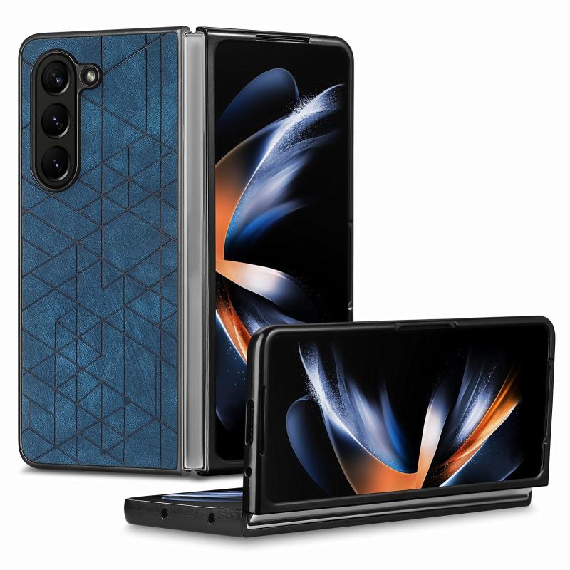 For Samsung Galaxy Z Fold5 Geometric Leather Back Cover Phone Case(Blue)