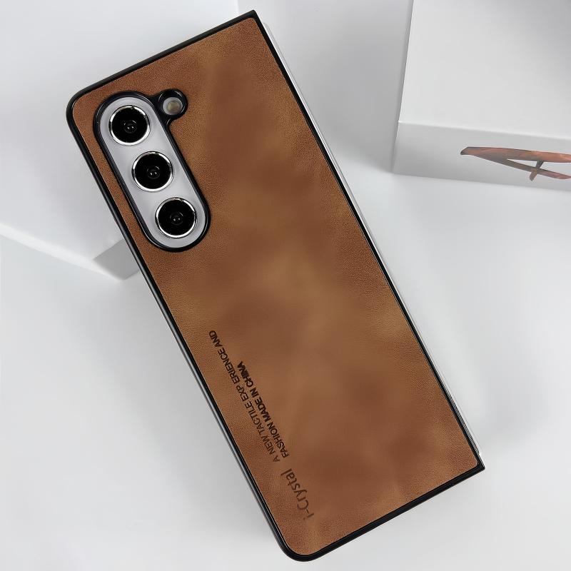 For Samsung Galaxy Z Fold5 i.Crystal Lambskin Folding Phone Case(Brown)