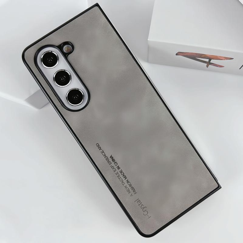 For Samsung Galaxy Z Fold5 i.Crystal Lambskin Folding Phone Case(Light Grey)