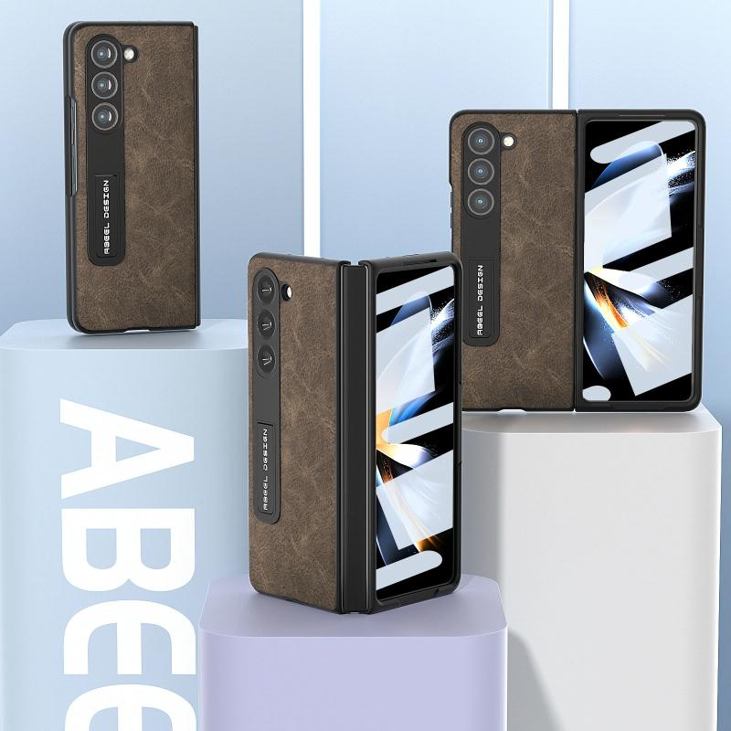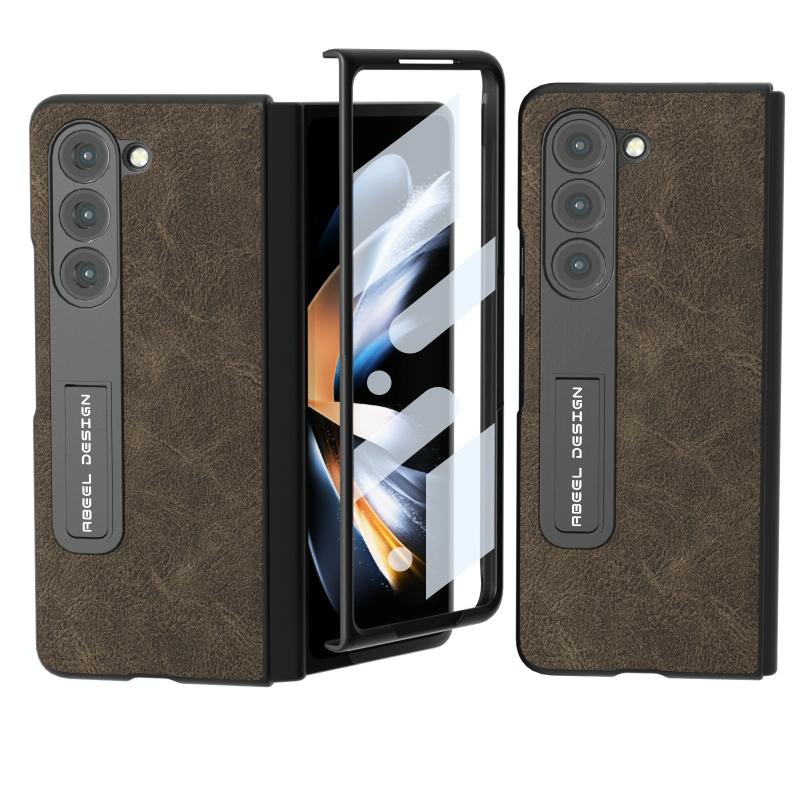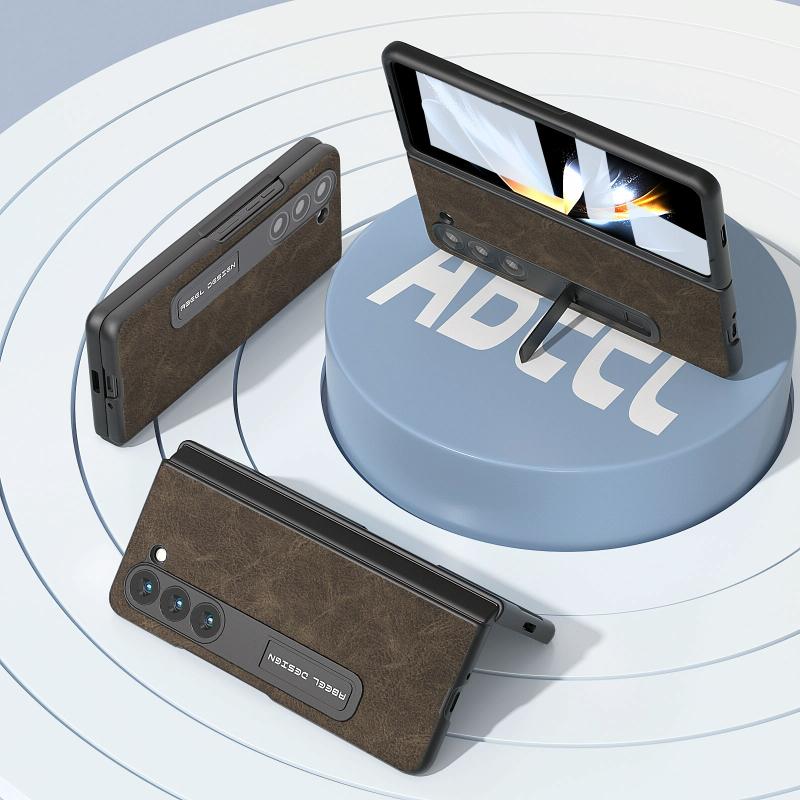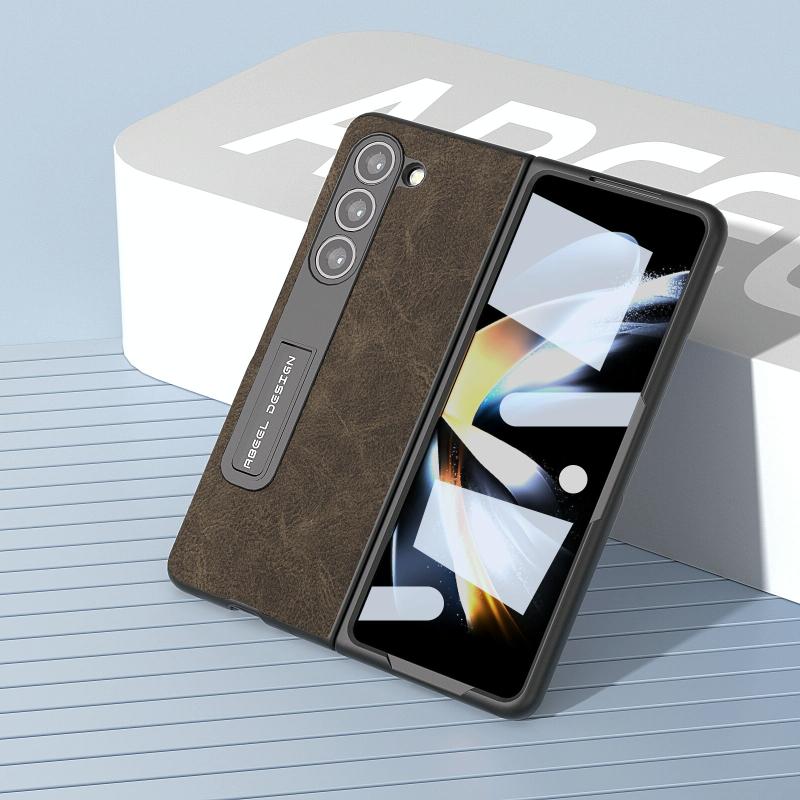 For Samsung Galaxy Z Fold5 Integrated Dream Litchi Texture PU Phone Case with Holder(Khaki)