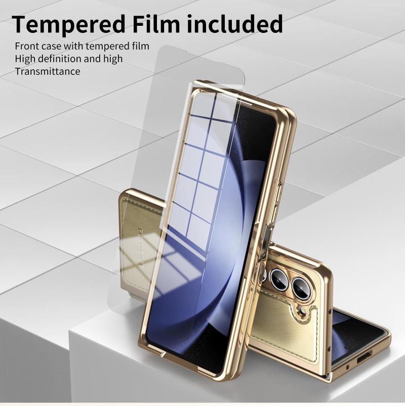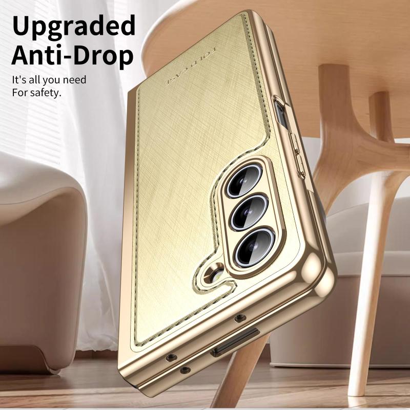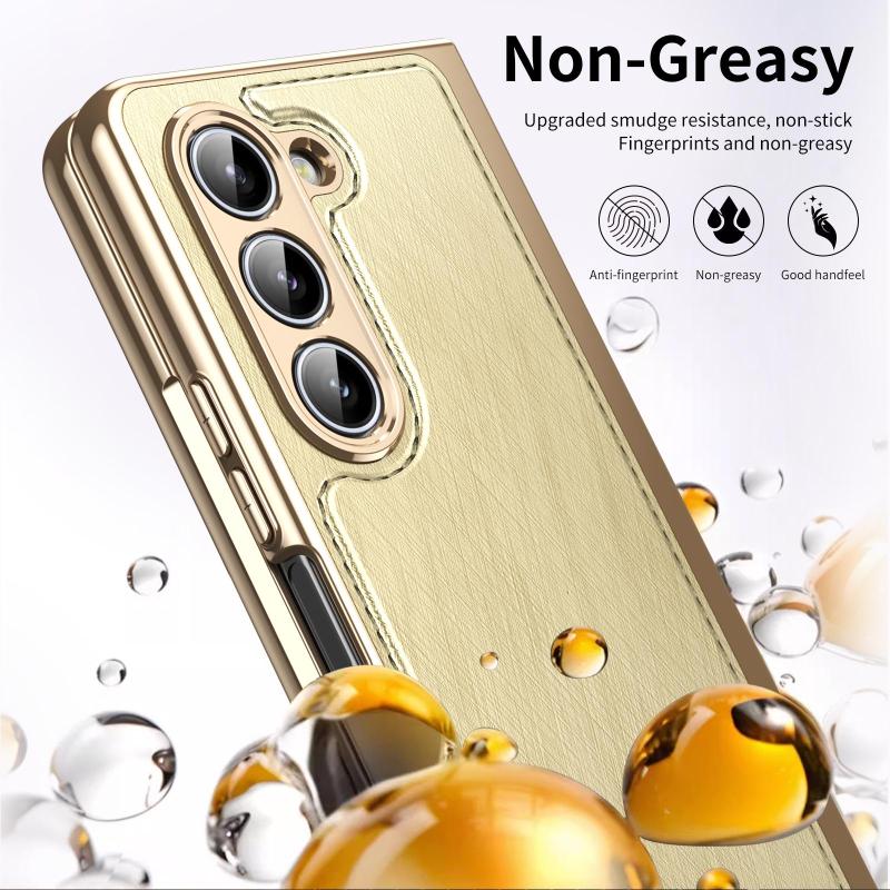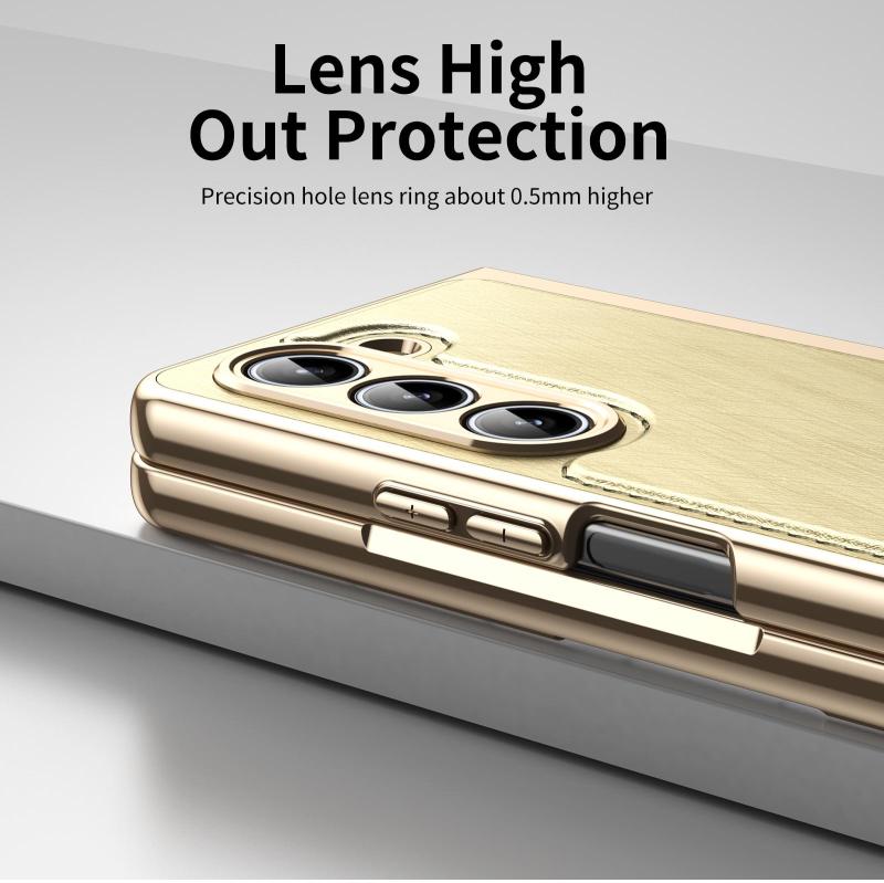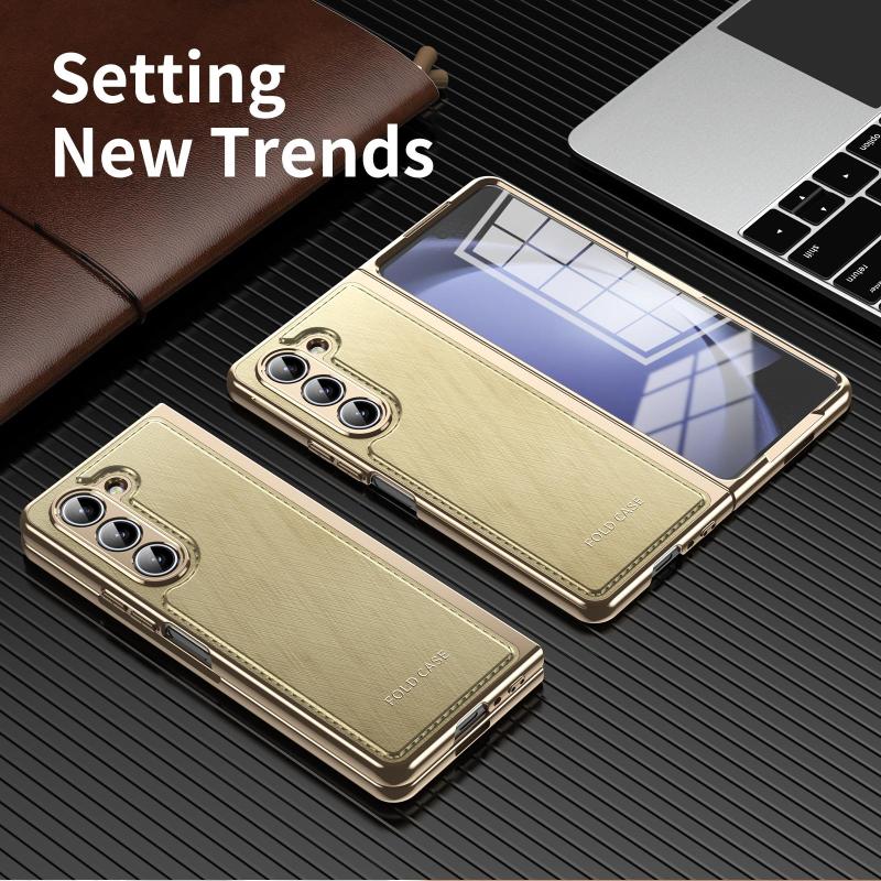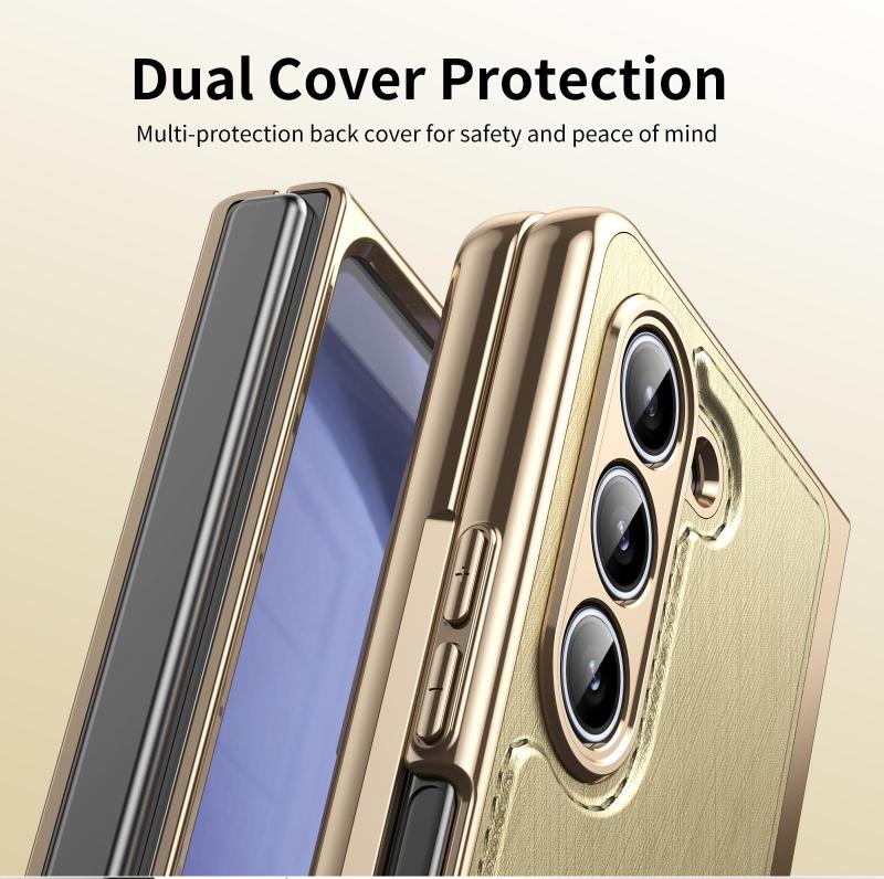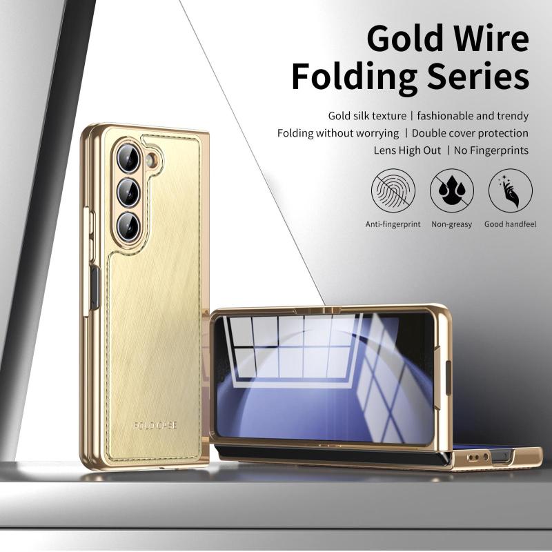 For Samsung Galaxy Z Fold5 Integrated Gold Wire Silver Brocade Plating Phone Case(Gold)