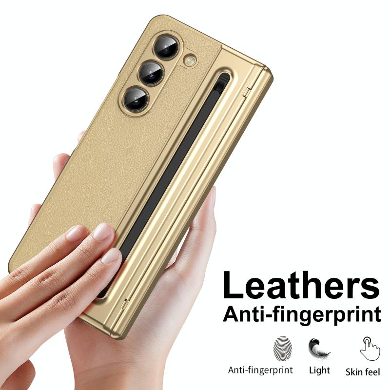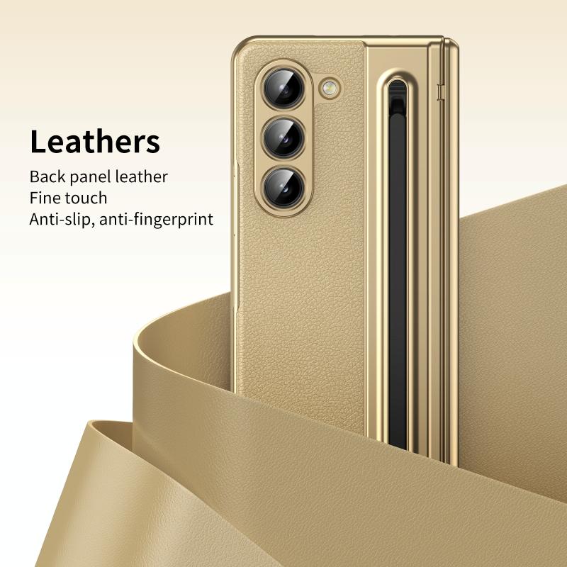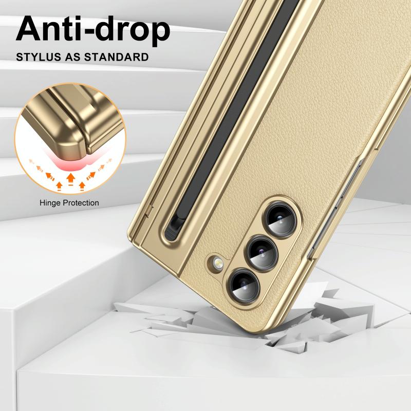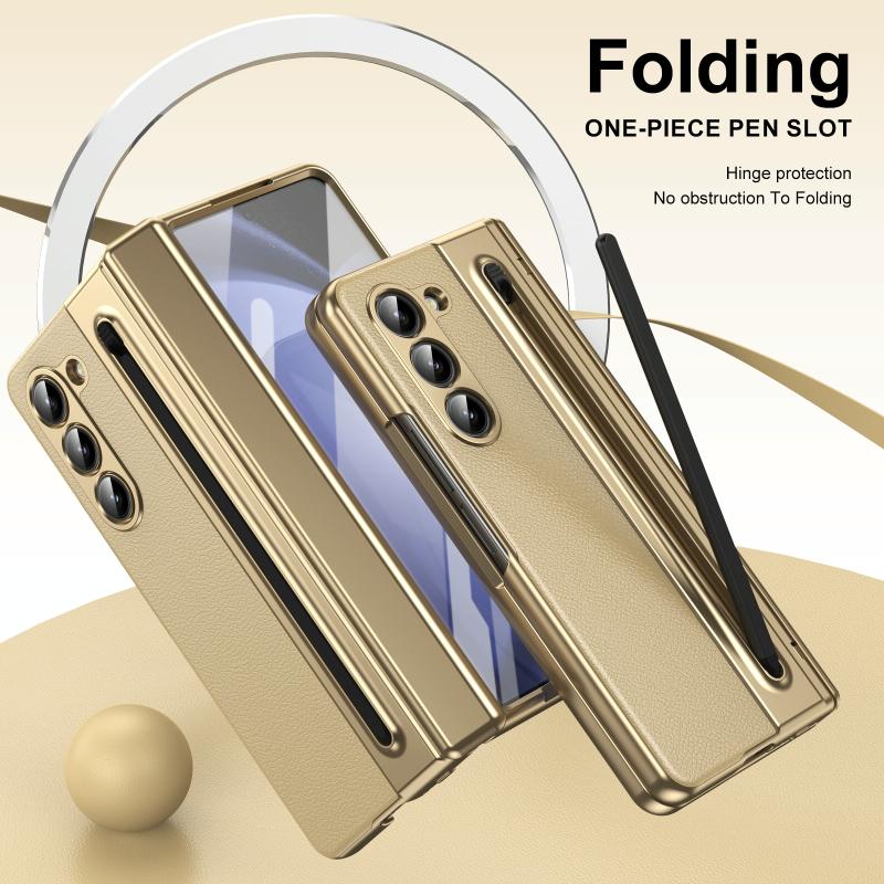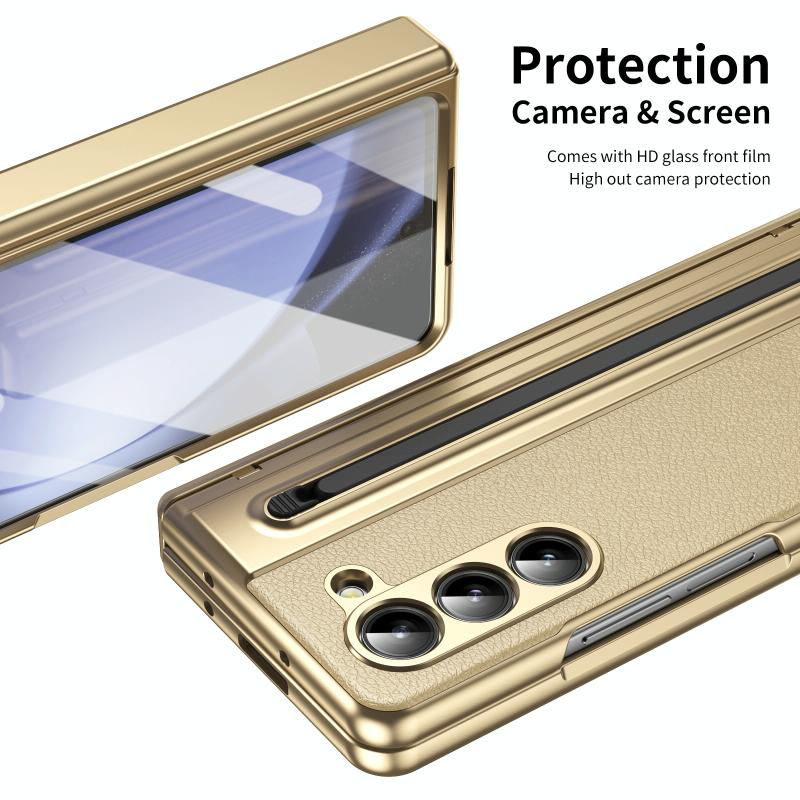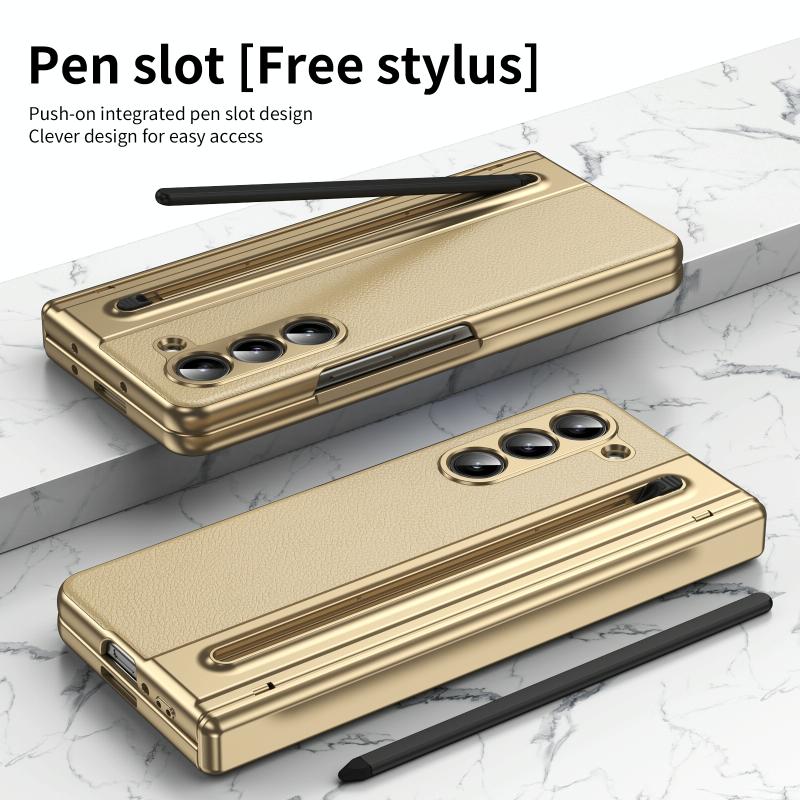 For Samsung Galaxy Z Fold5 Integrated PC + PU Phone Case with Pen / Pen Box(Gold)