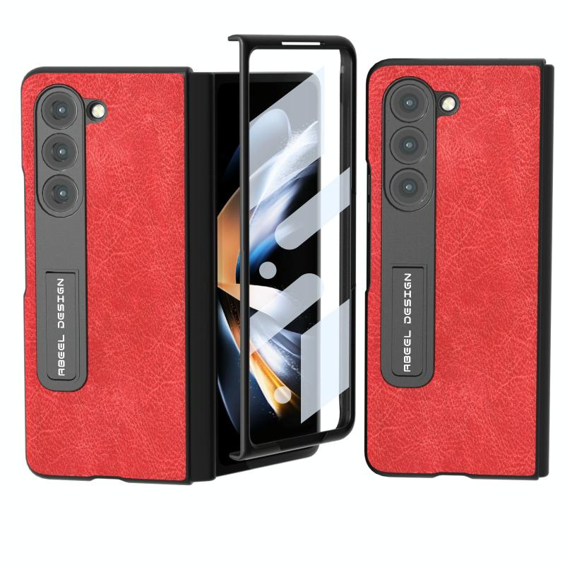 For Samsung Galaxy Z Fold5 Integrated Retro Litchi Texture PU Phone Case with Holder(Red)