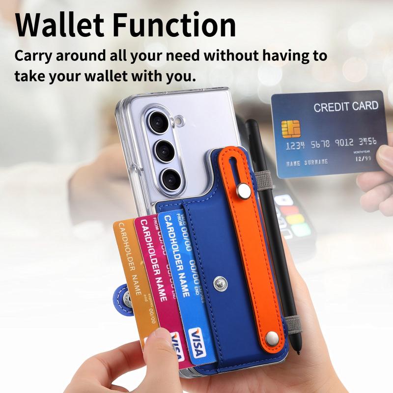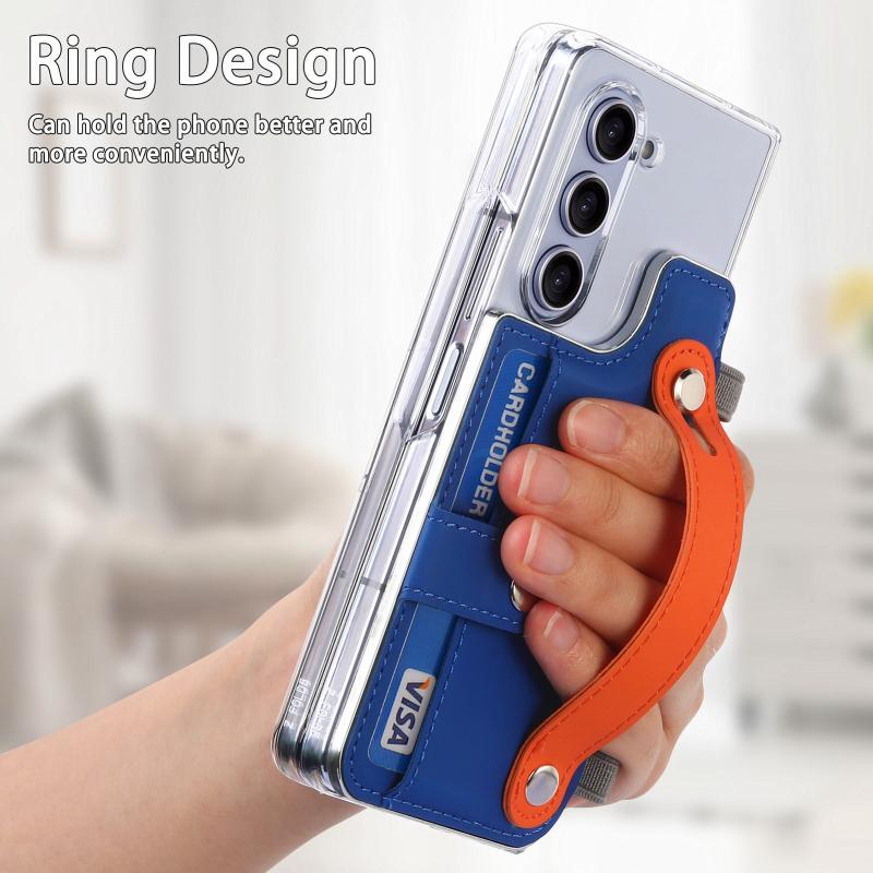 For Samsung Galaxy Z Fold5 Kor Version Multi-functional Wristband Card Wallet Transparent Phone Case(Dark Blue)