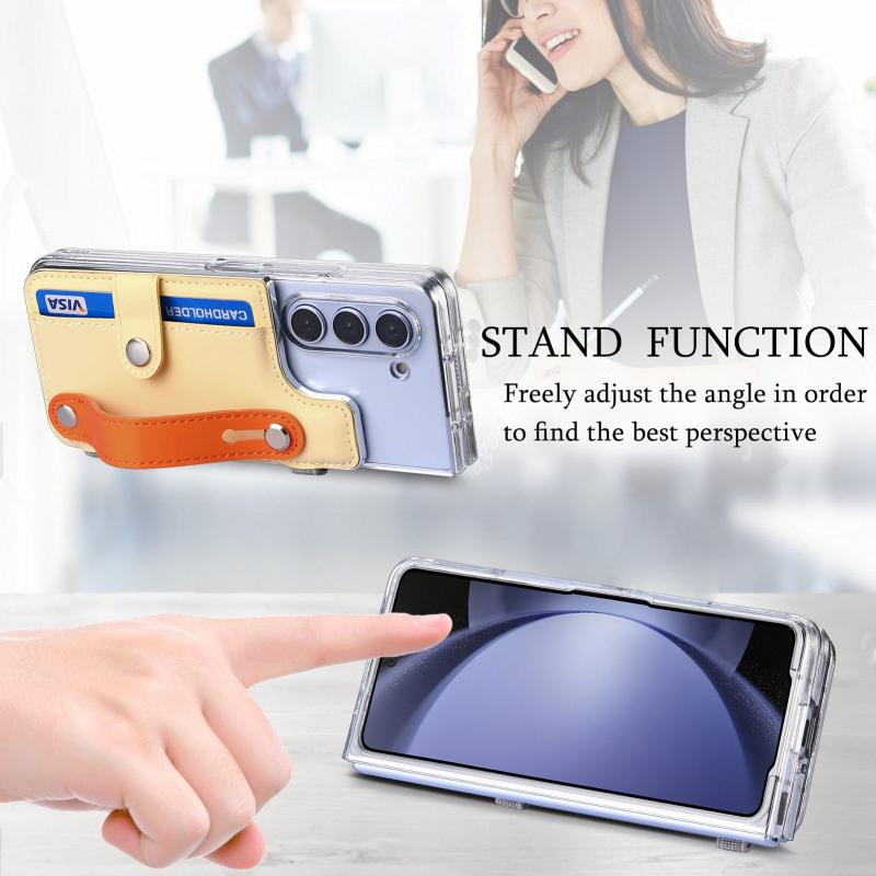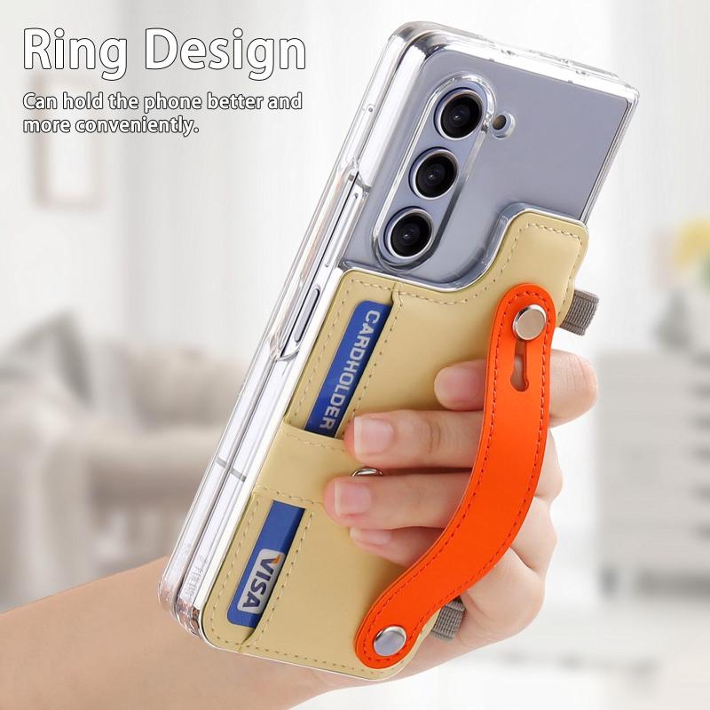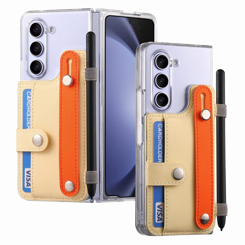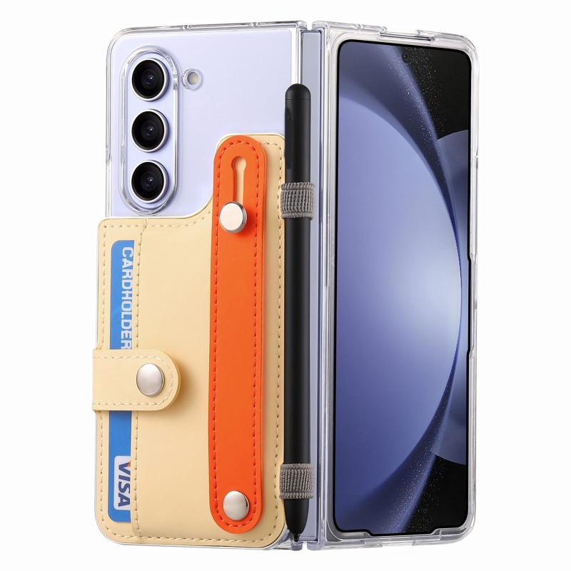 For Samsung Galaxy Z Fold5 Kor Version Multi-functional Wristband Card Wallet Transparent Phone Case(Yellow)