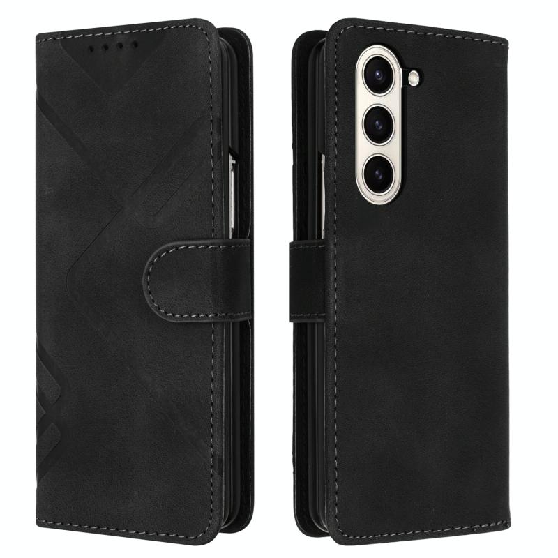 For Samsung Galaxy Z Fold5 Line Pattern Skin Feel Leather Phone Case(Black)