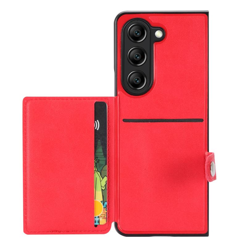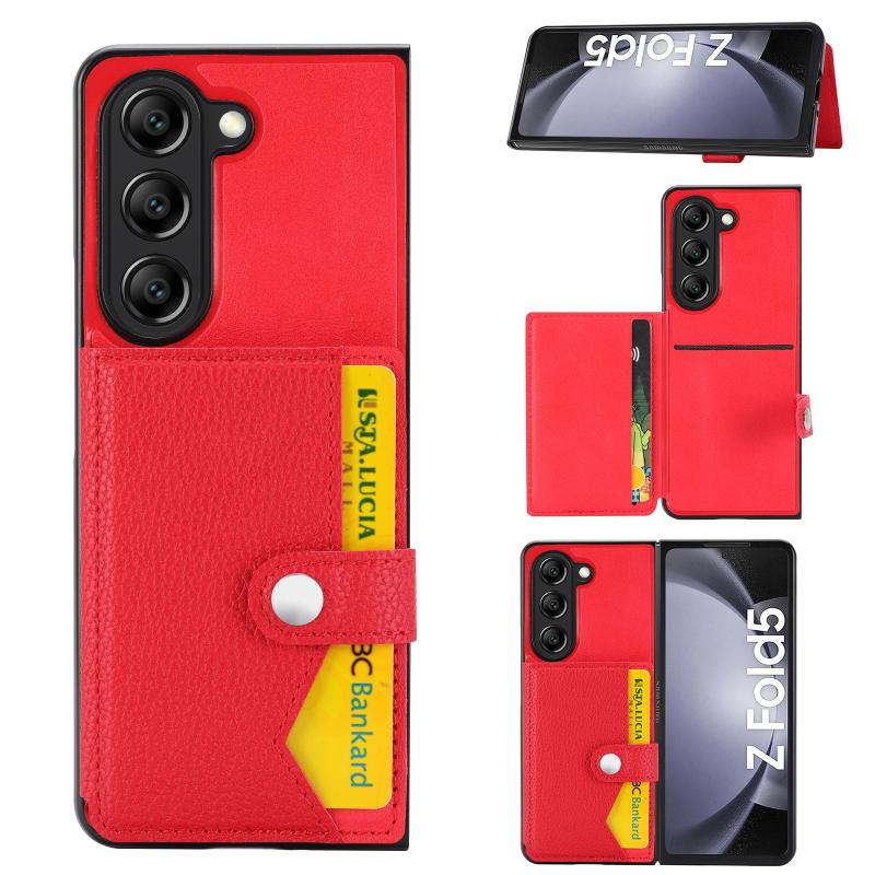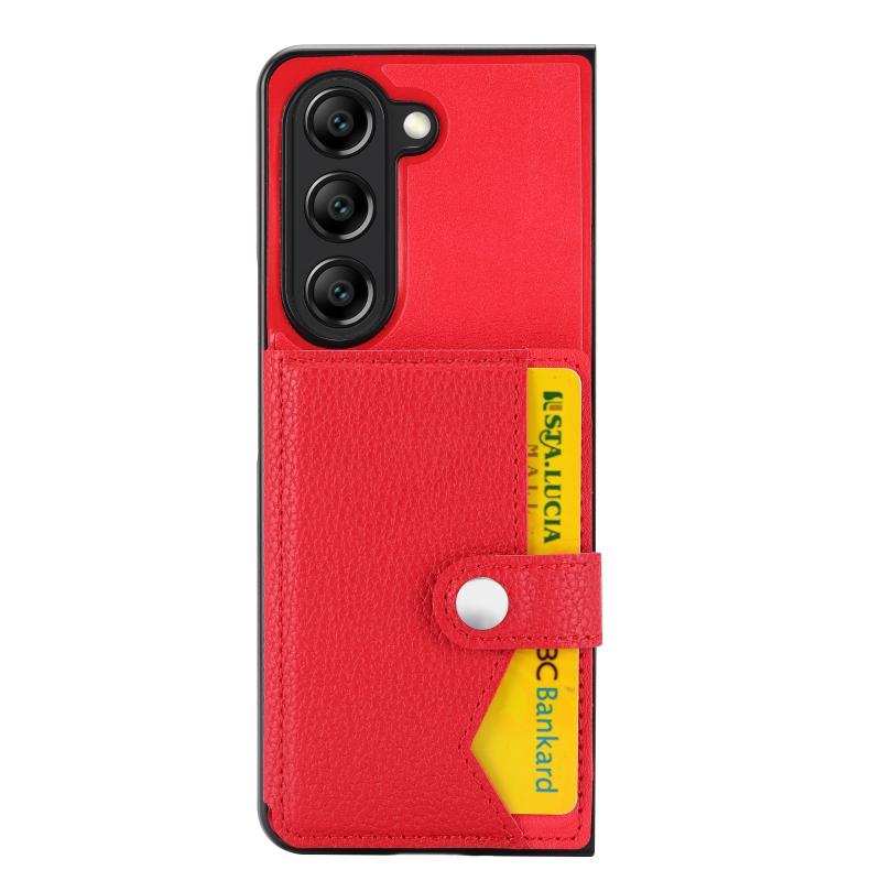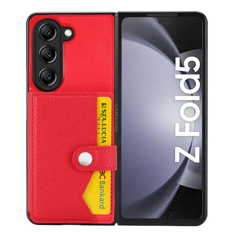 For Samsung Galaxy Z Fold5 Litchi Pattern Single Button Card Holder Phone Case(Red)