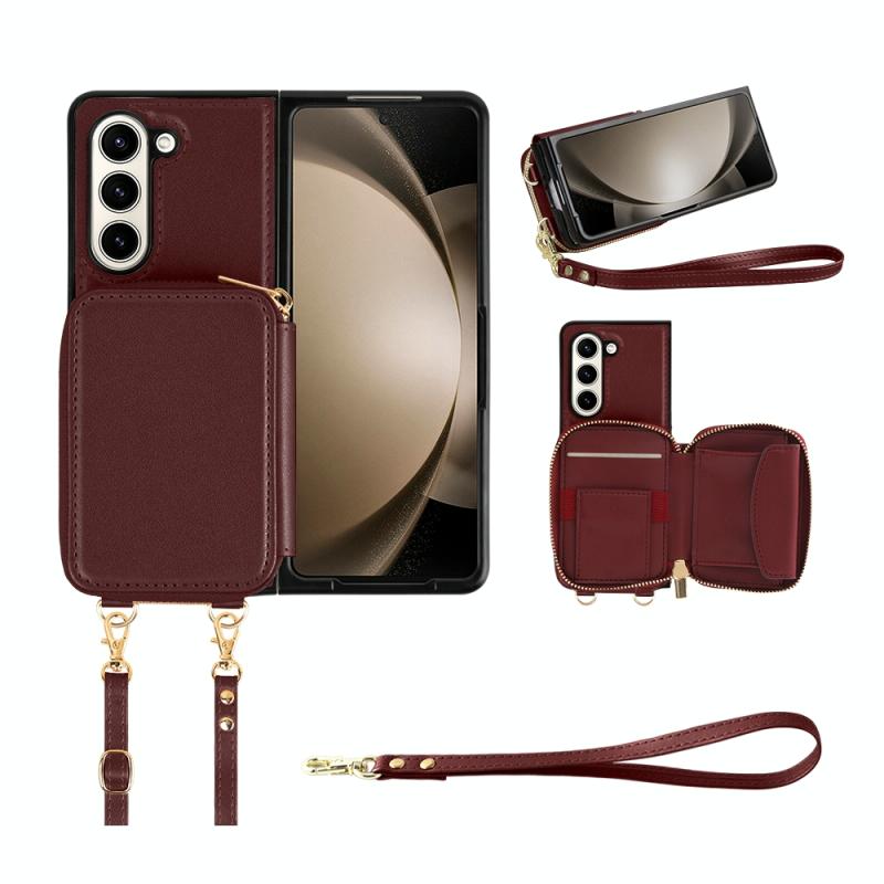 For Samsung Galaxy Z Fold5 Multifunctional Card Bag Phone Case(Wine Red)