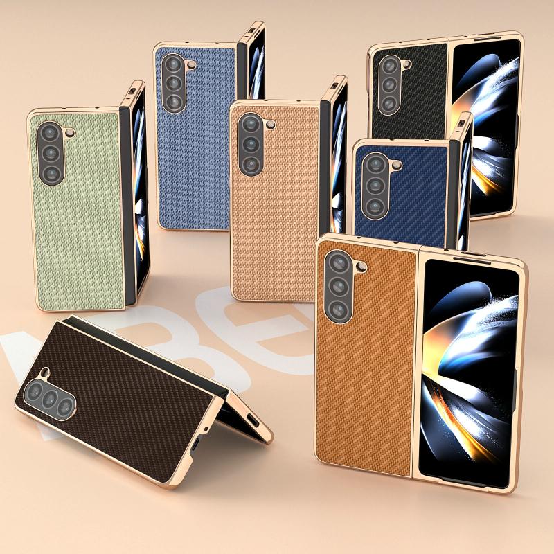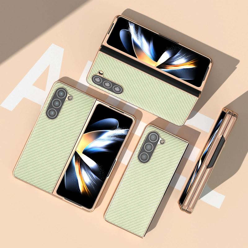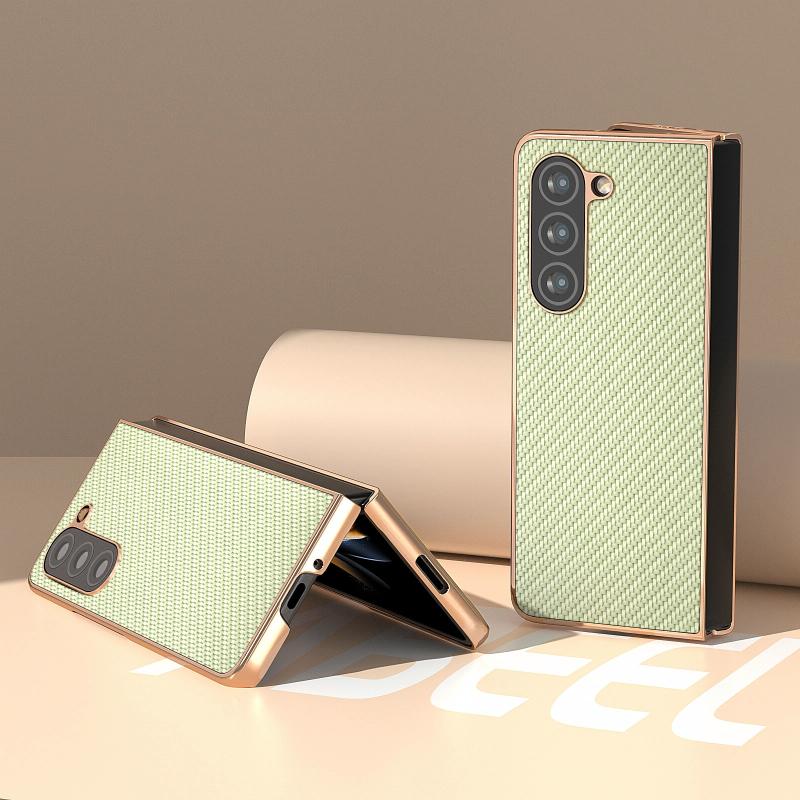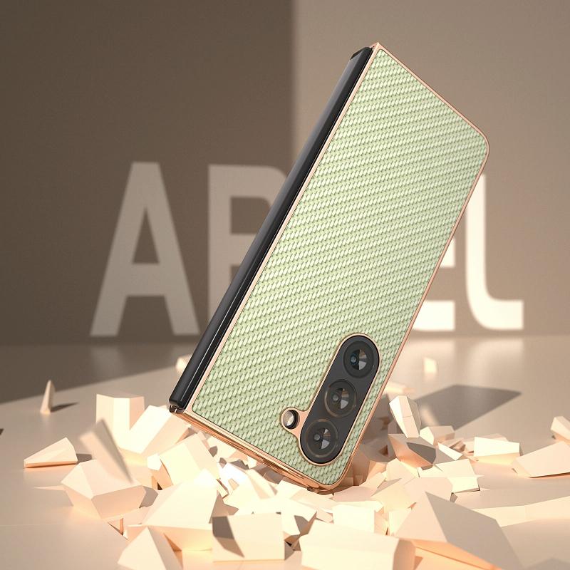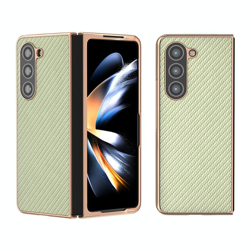 For Samsung Galaxy Z Fold5 Nano Electroplating Carbon Fiber Texture Phone Case(Green)