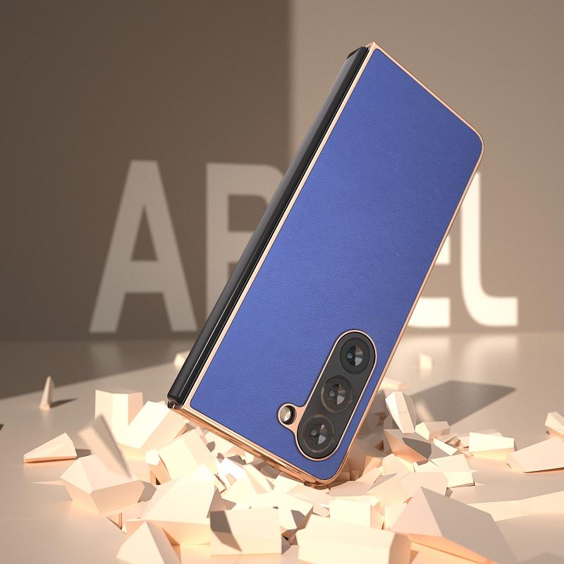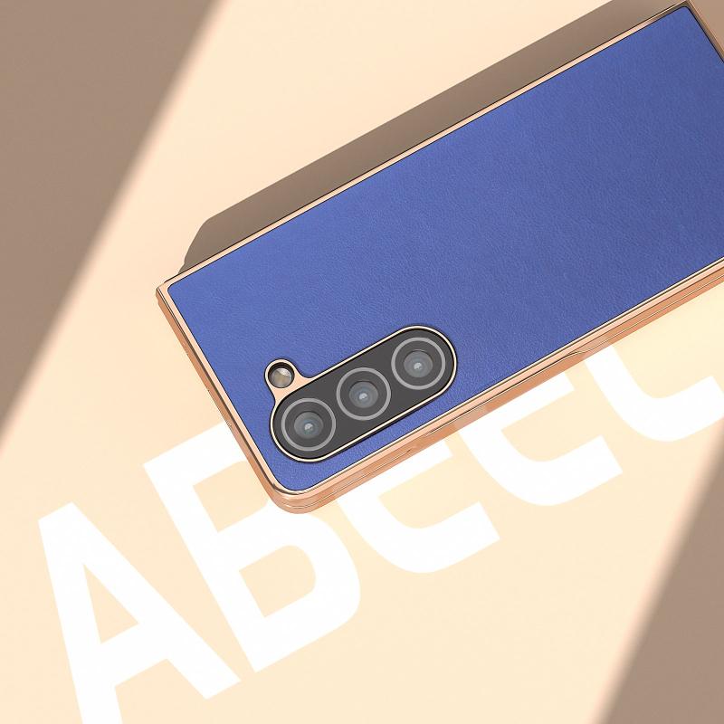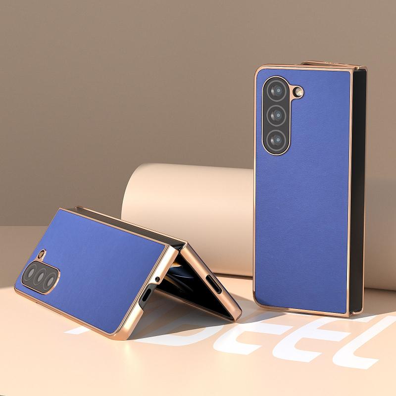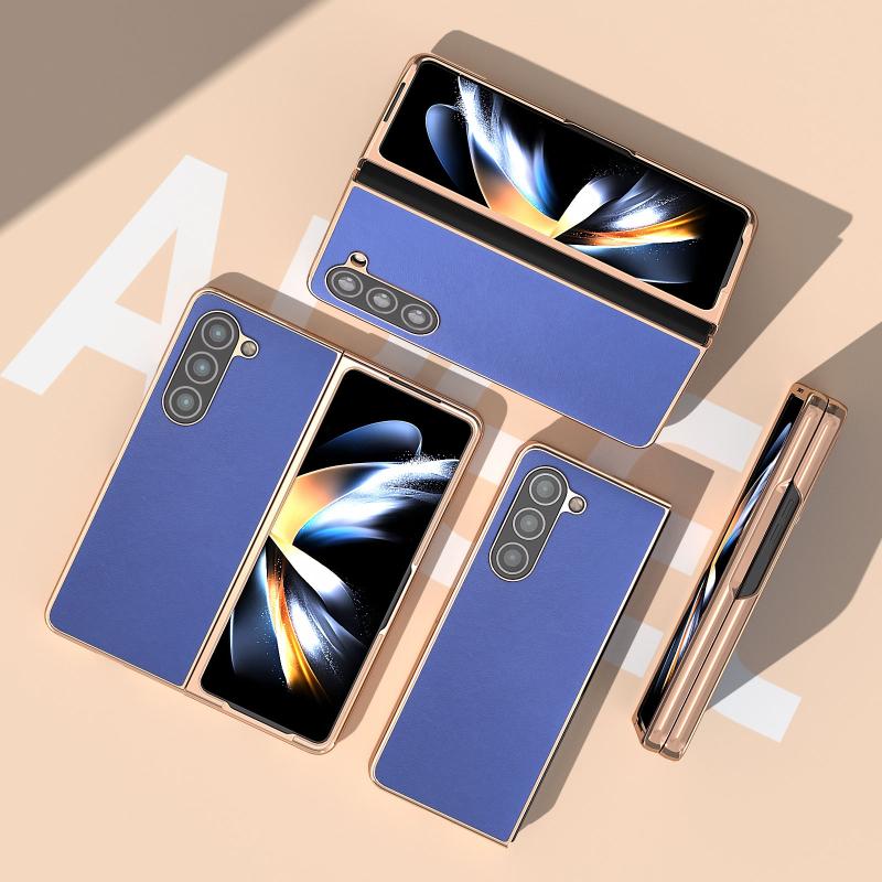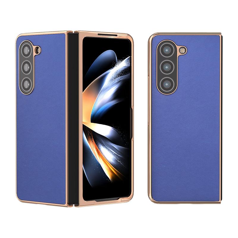 For Samsung Galaxy Z Fold5 Nano Electroplating Haze Texture PU Phone Case(Dark Blue)
