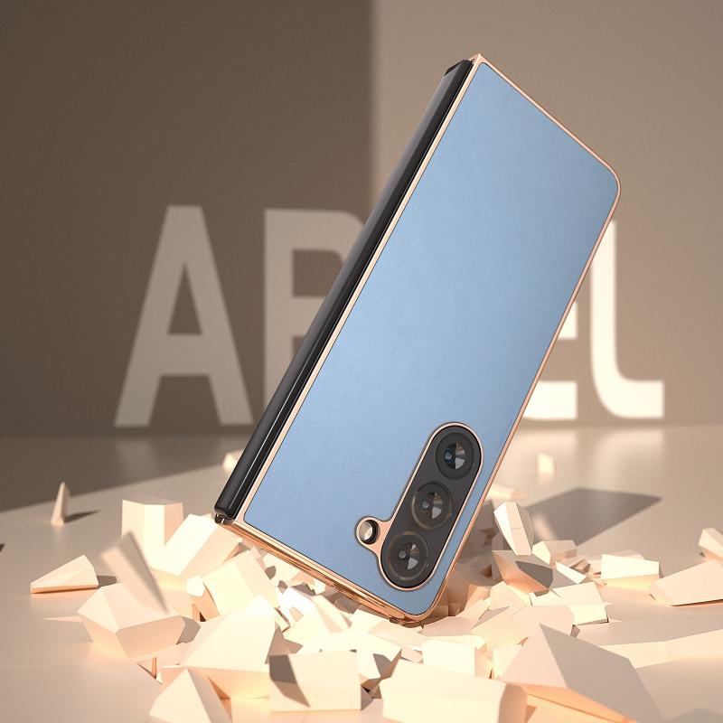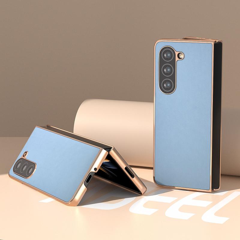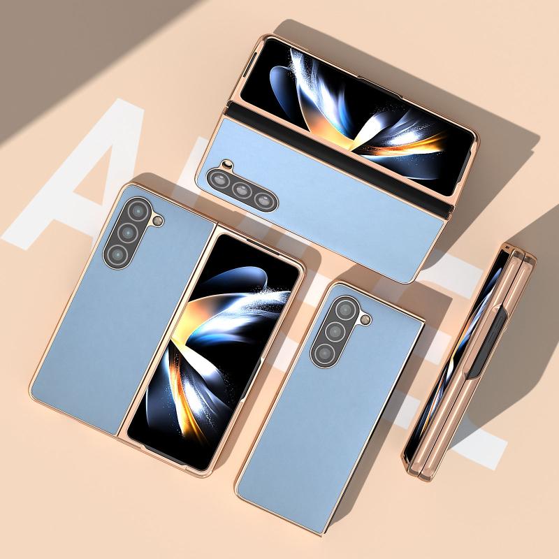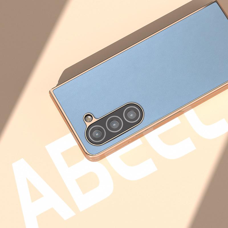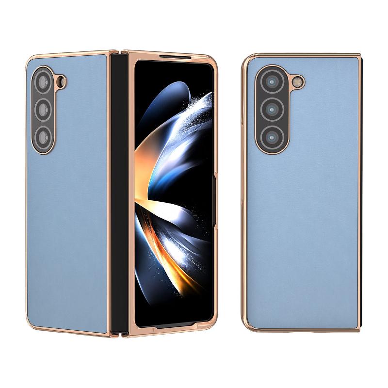 For Samsung Galaxy Z Fold5 Nano Electroplating Haze Texture PU Phone Case(Light Blue)