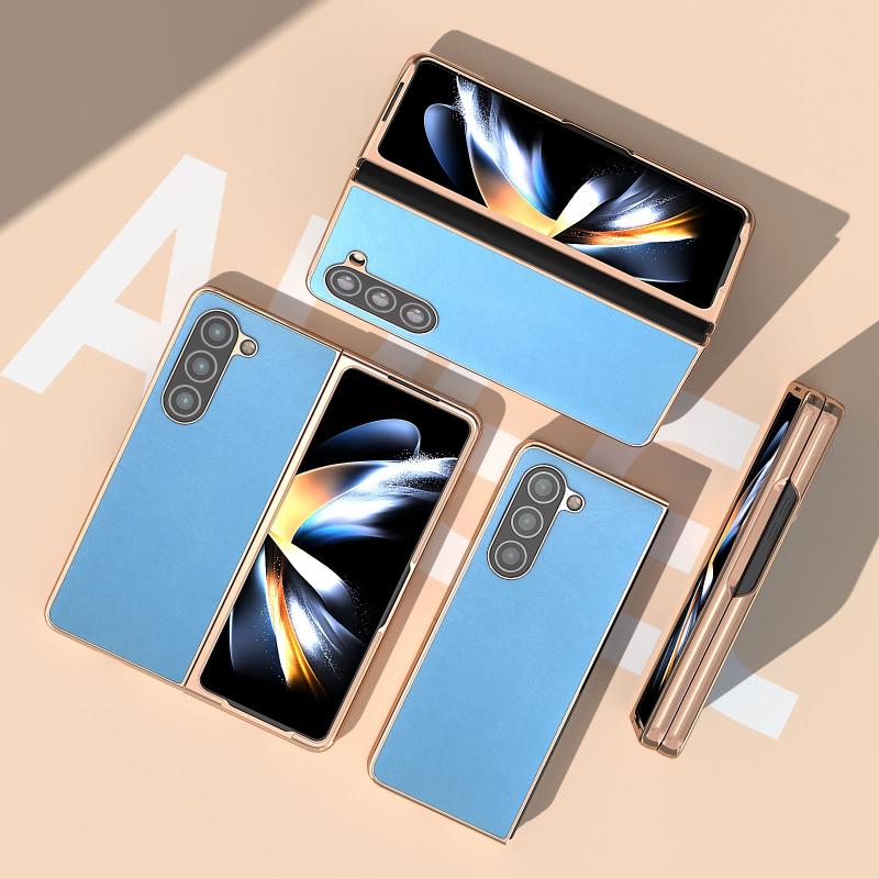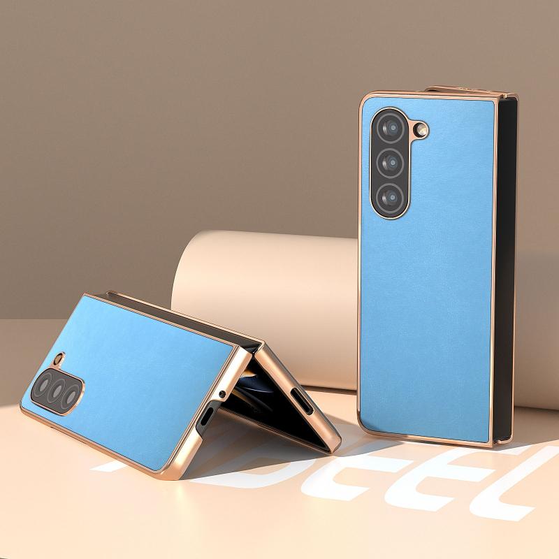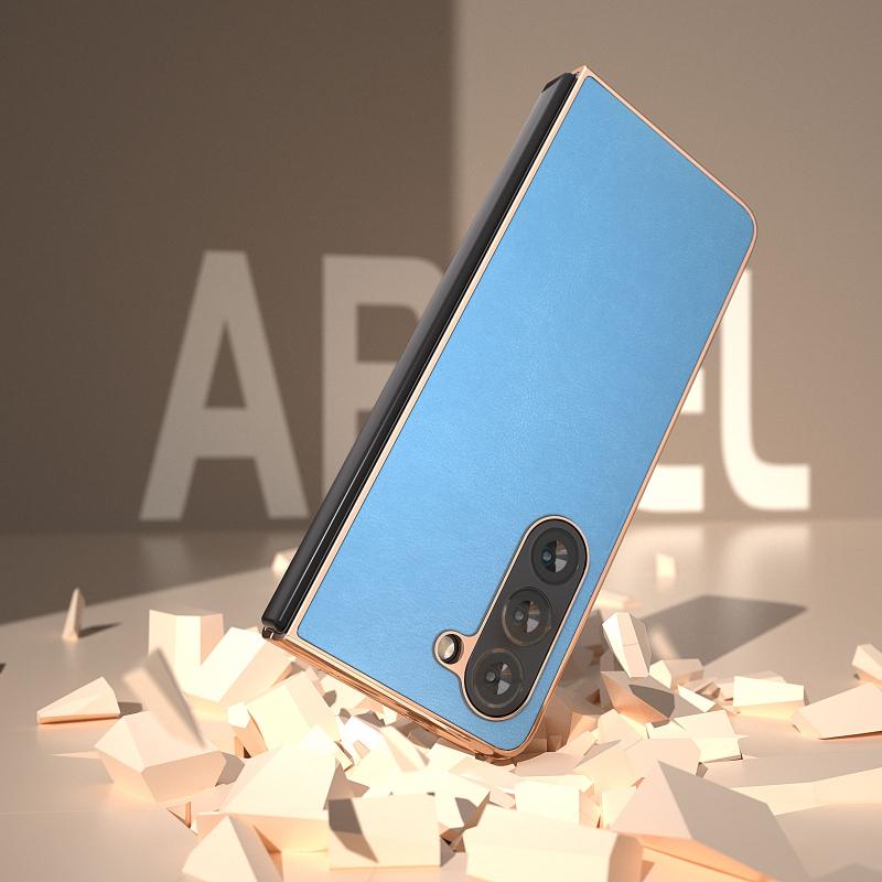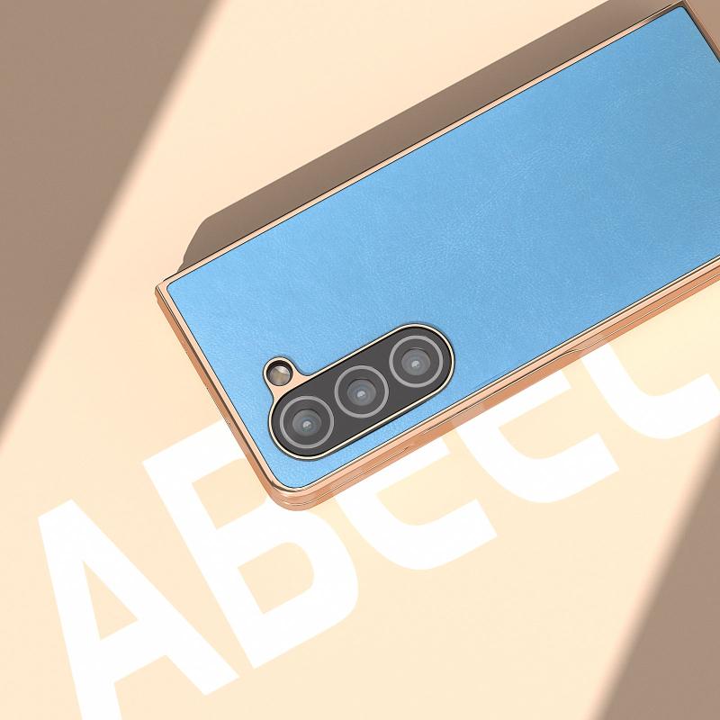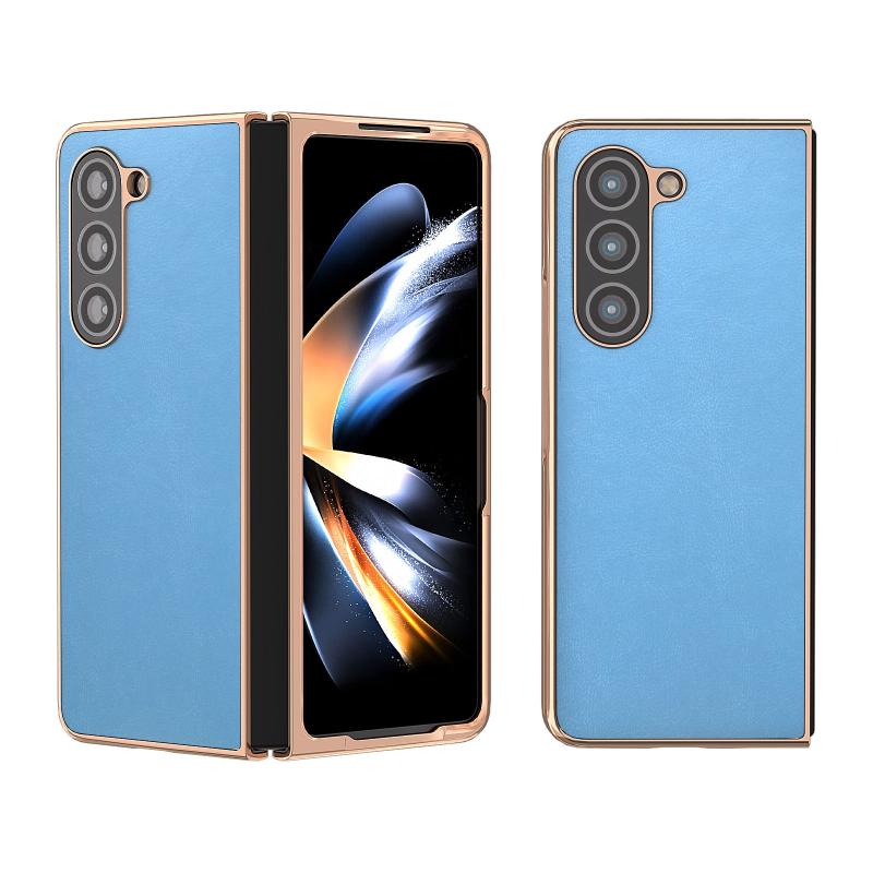 For Samsung Galaxy Z Fold5 Nano Electroplating Haze Texture PU Phone Case(Sky Blue)