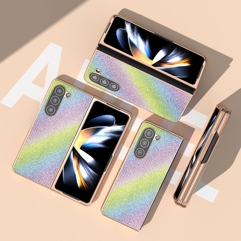 For Samsung Galaxy Z Fold5 Nano Plating Diamond Texture Phone Case(Rainbow)