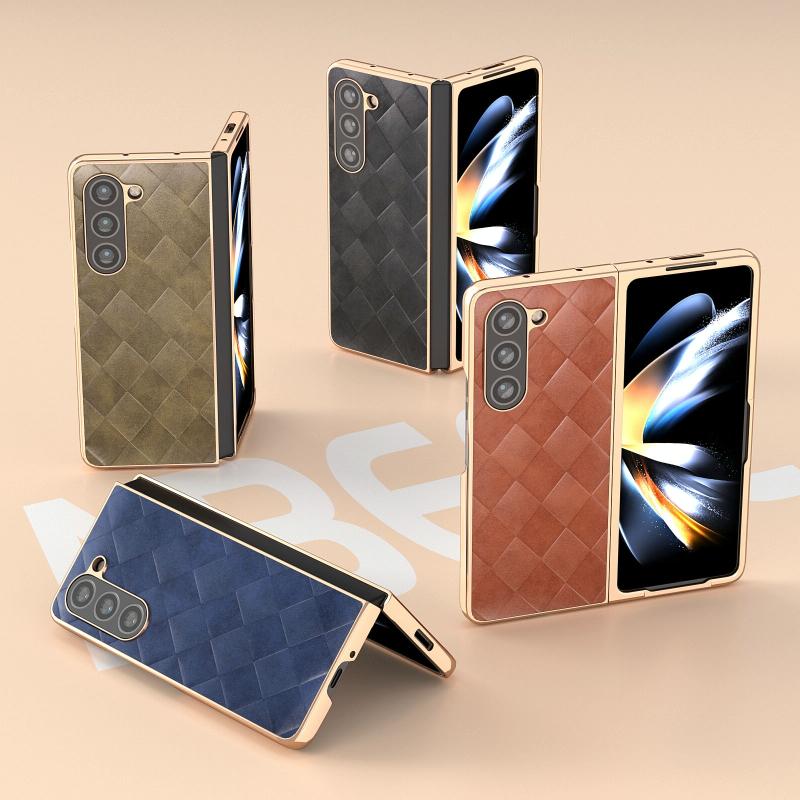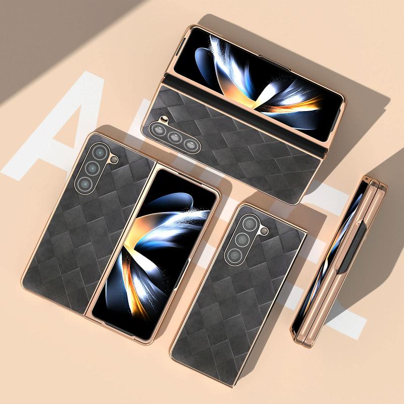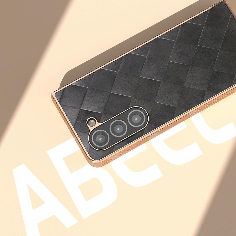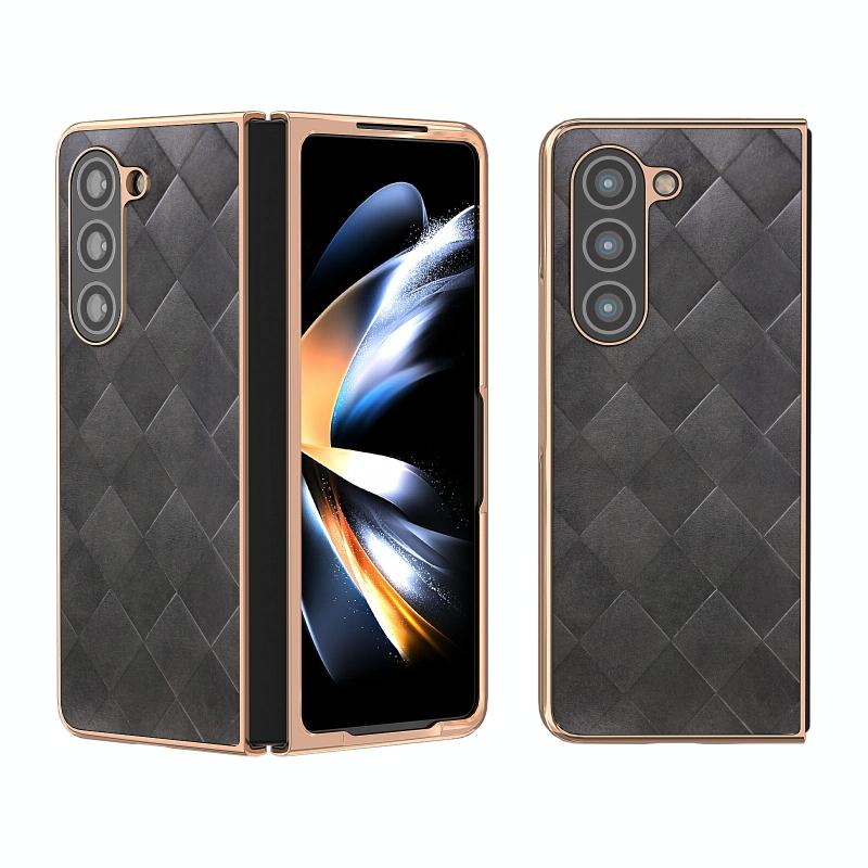 For Samsung Galaxy Z Fold5 Nano Plating Weave Plaid Texture PU Phone Case(Black)