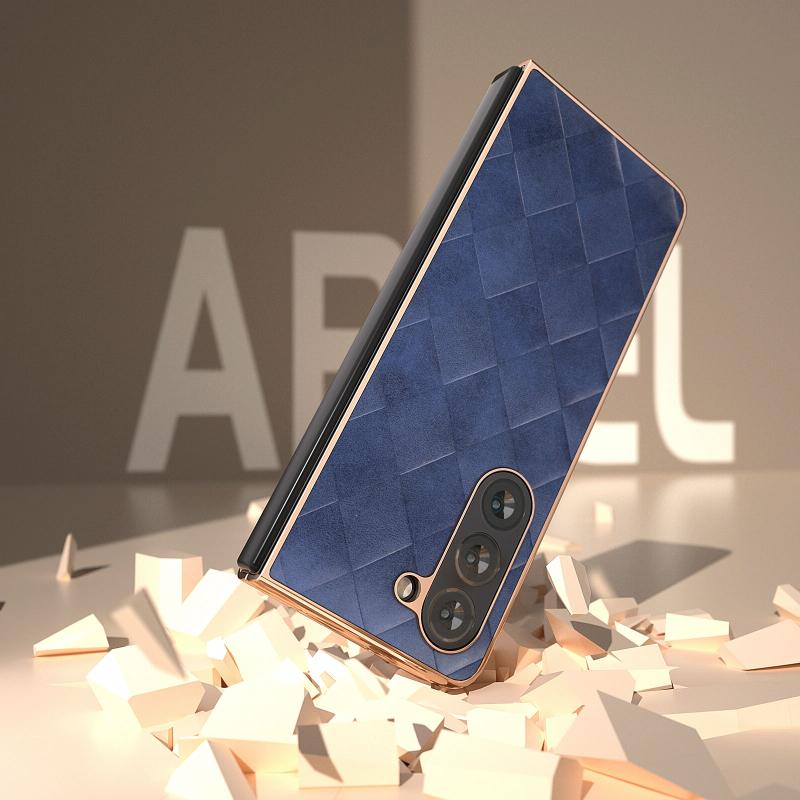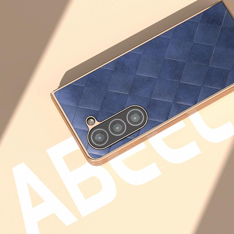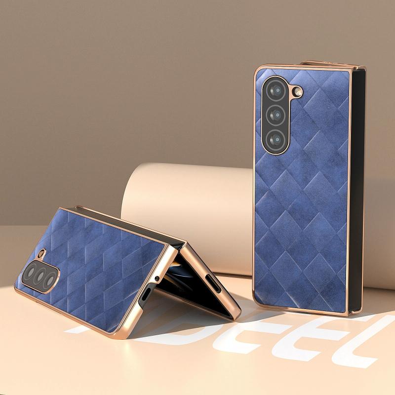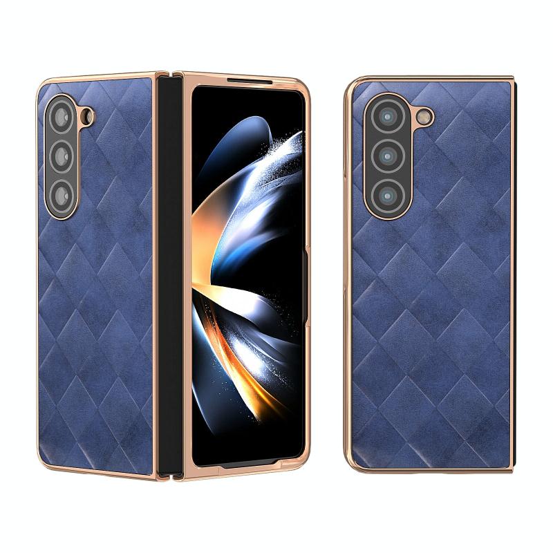 For Samsung Galaxy Z Fold5 Nano Plating Weave Plaid Texture PU Phone Case(Blue)