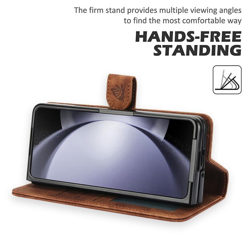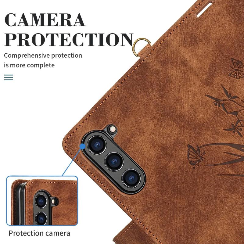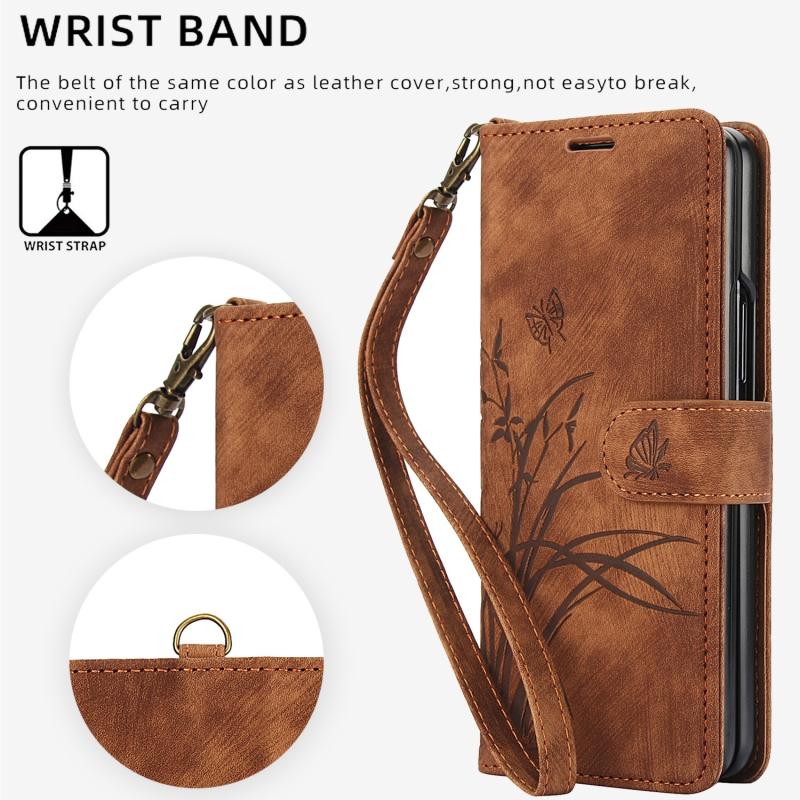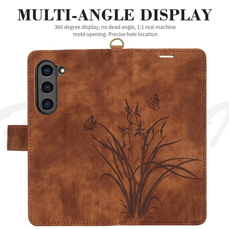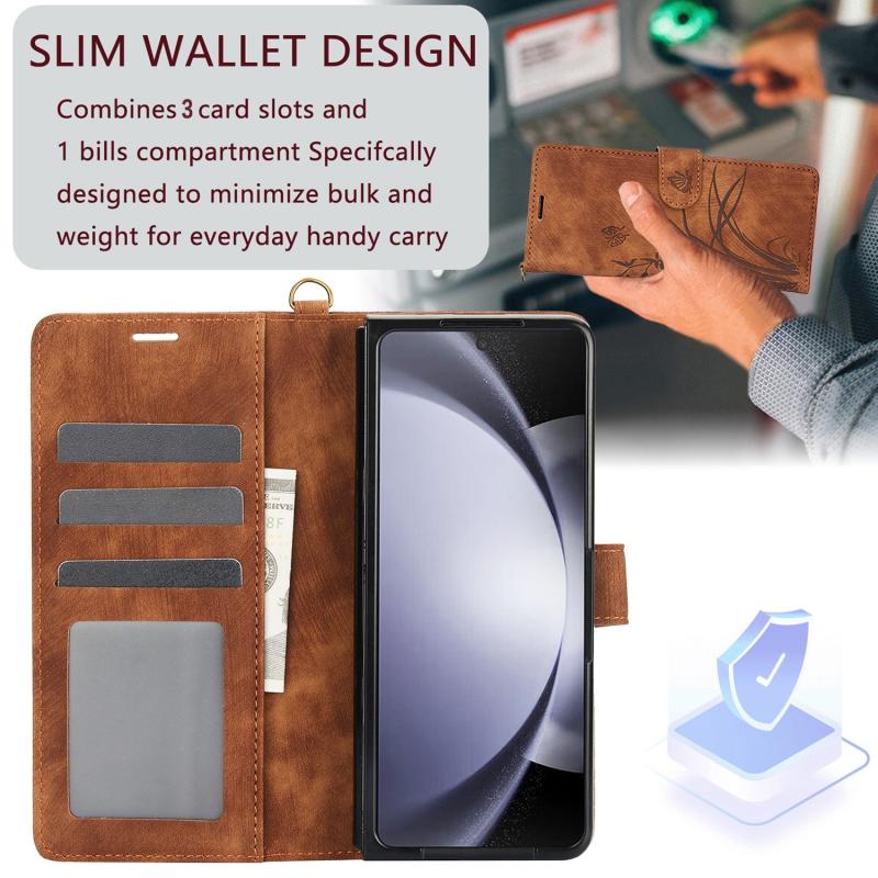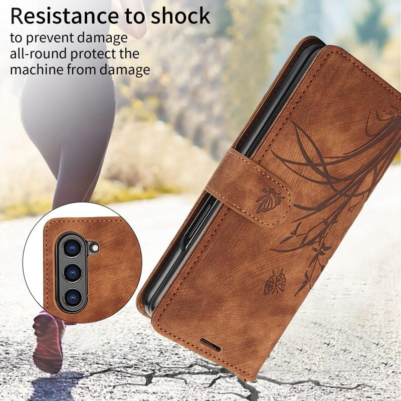 For Samsung Galaxy Z Fold5 Orchid Butterfly Embossed Leather Phone Case(Brown)