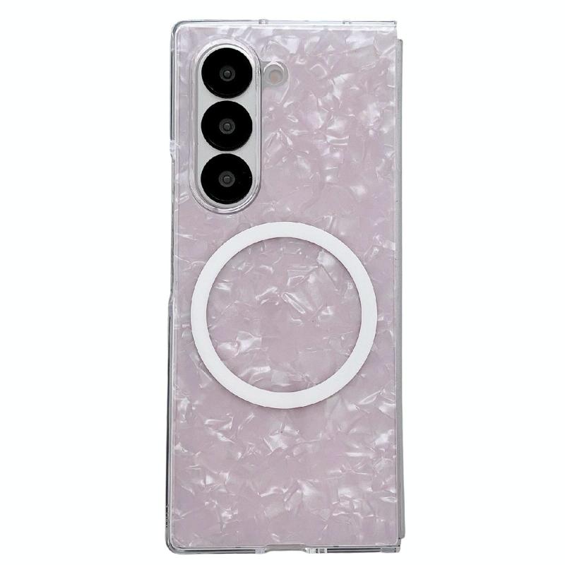 For Samsung Galaxy Z Fold5 Pearlescent Shell Texture MagSafe Phone Case(Pink)