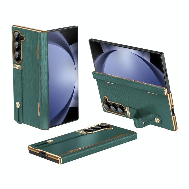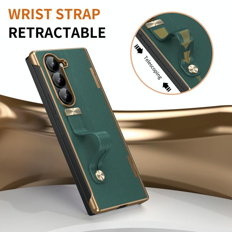 For Samsung Galaxy Z Fold5 Retractable Wrist Strap Invisible Stand Phone Case(Green)