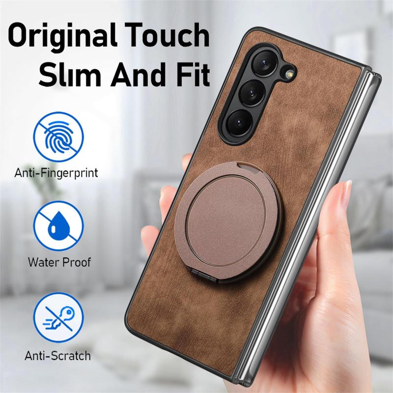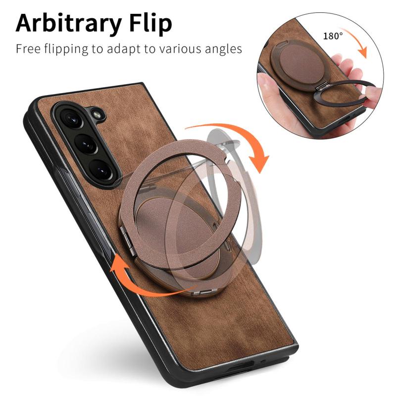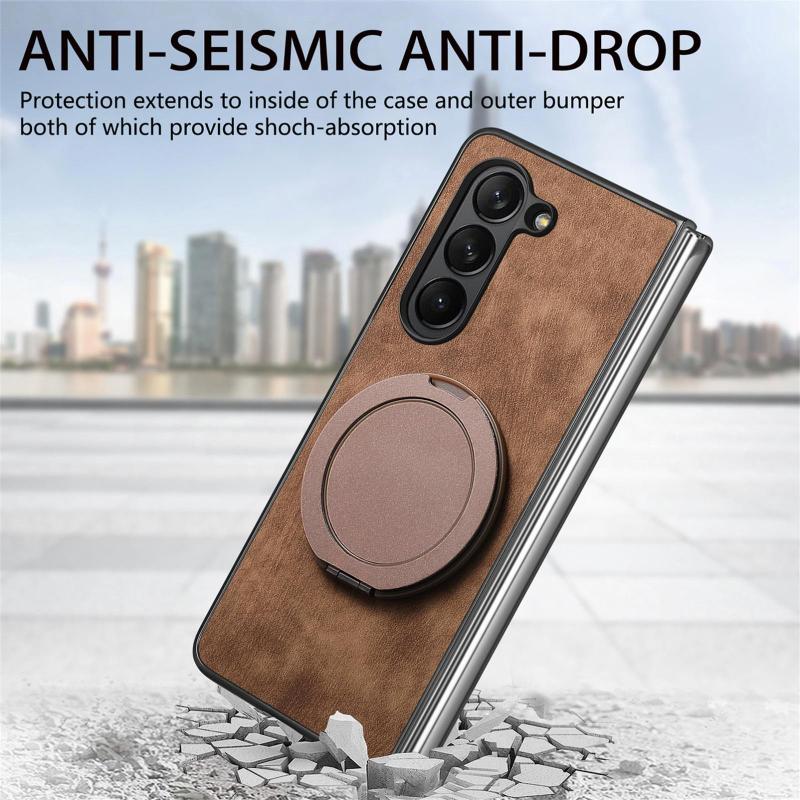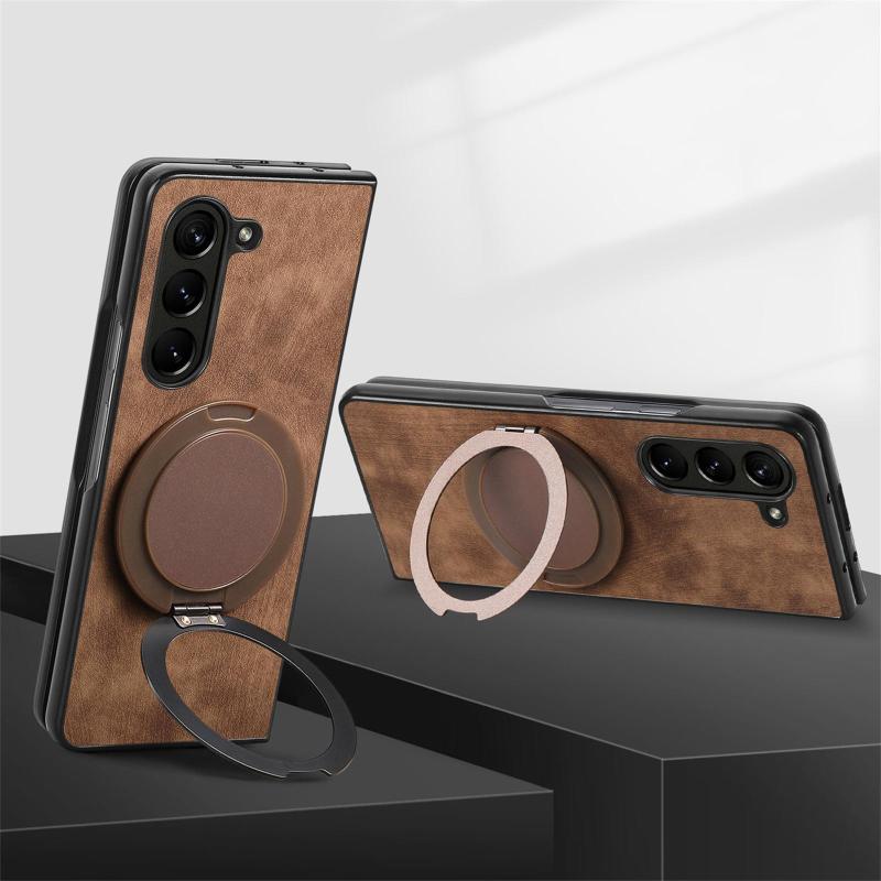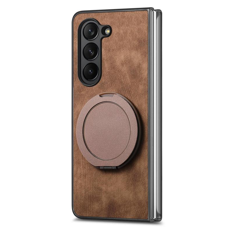 For Samsung Galaxy Z Fold5 Retro Leather Rotation Round Holder Phone Case(Brown)
