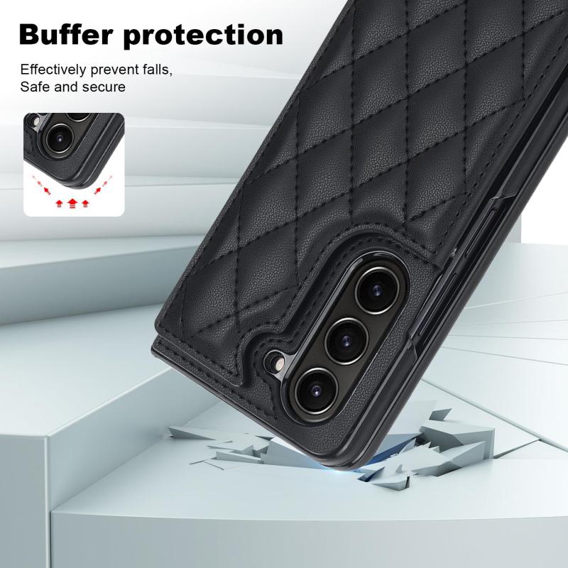 For Samsung Galaxy Z Fold5 Rhombic Texture Full Coverage Fold Double Buckle PU Phone Case(Black)