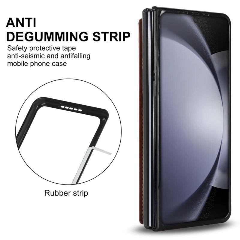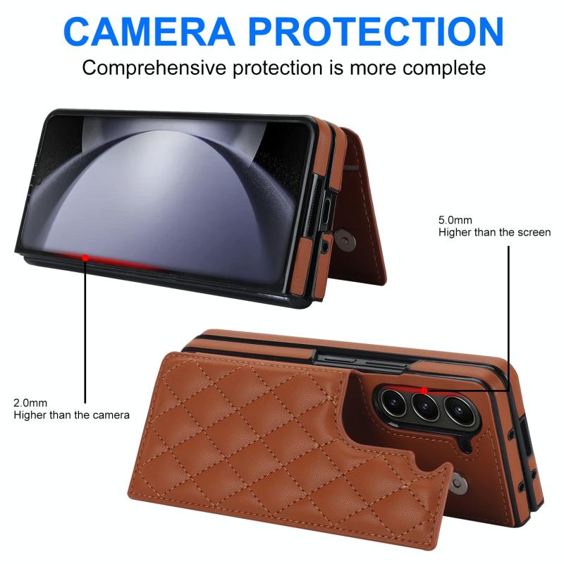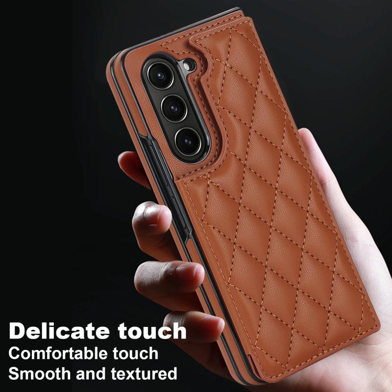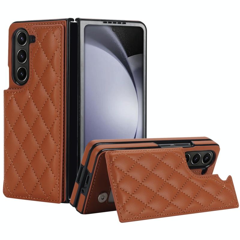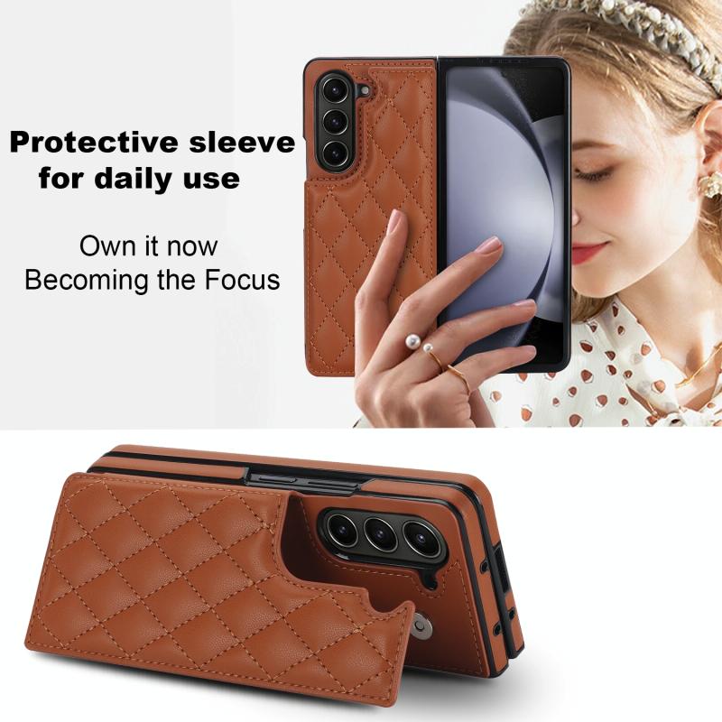 For Samsung Galaxy Z Fold5 Rhombic Texture Full Coverage Fold Double Buckle PU Phone Case(Brown)