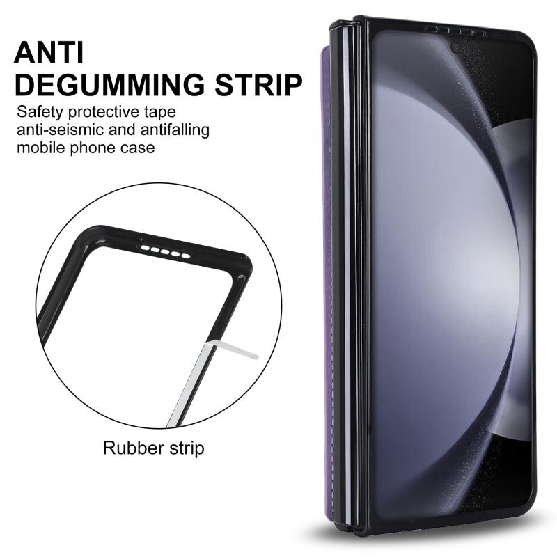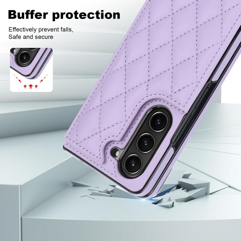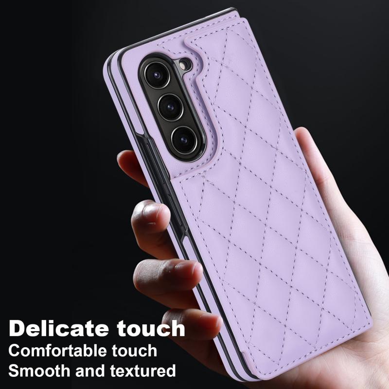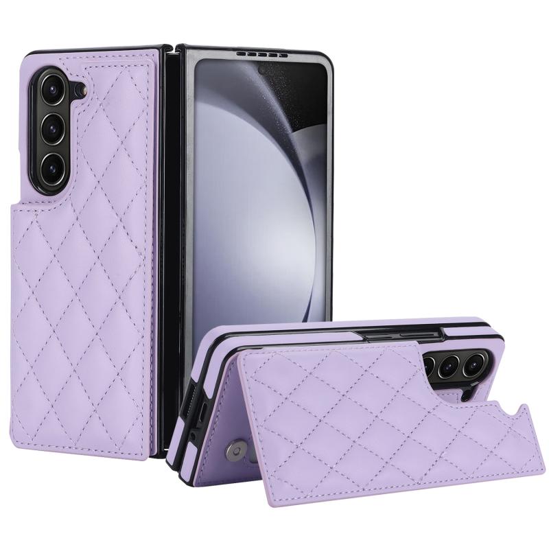 For Samsung Galaxy Z Fold5 Rhombic Texture Full Coverage Fold Double Buckle PU Phone Case(Purple)