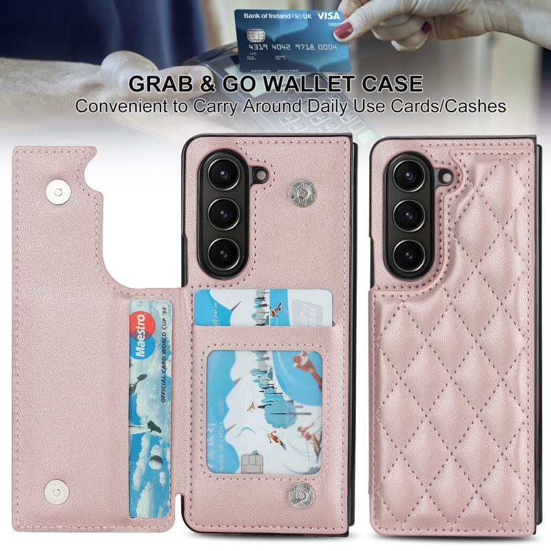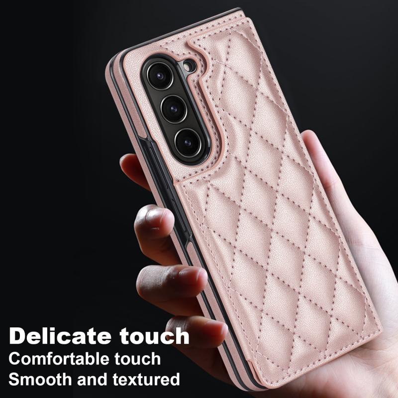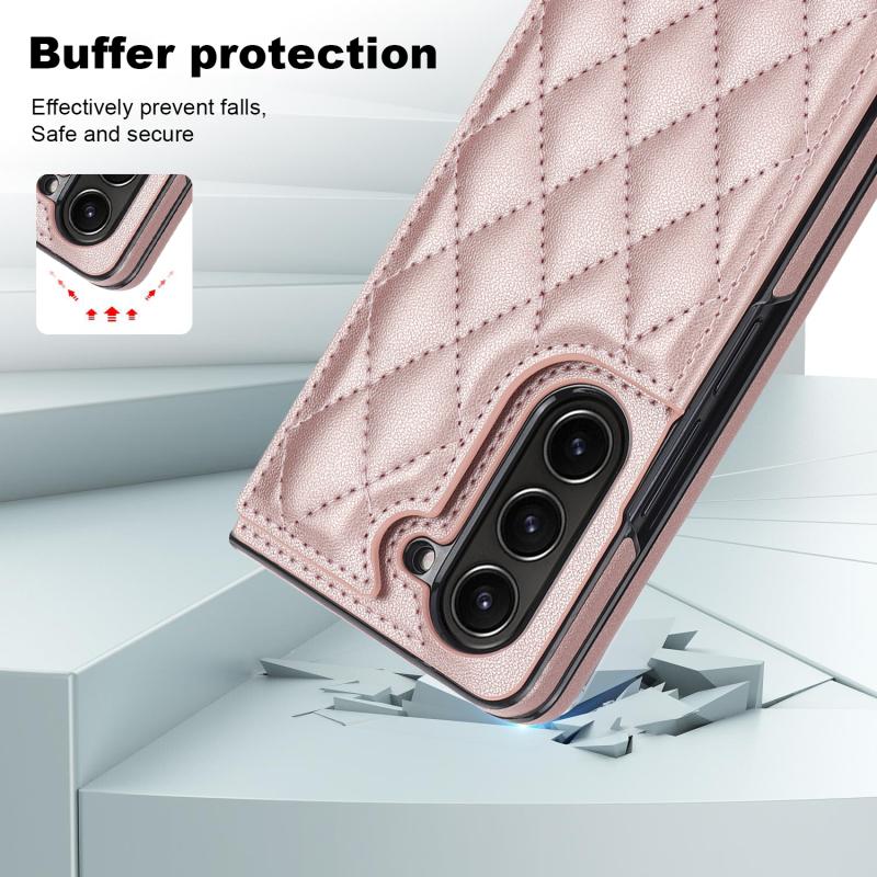 For Samsung Galaxy Z Fold5 Rhombic Texture Full Coverage Fold Double Buckle PU Phone Case(Rose Gold)