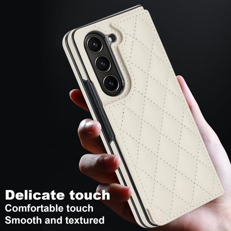 For Samsung Galaxy Z Fold5 Rhombic Texture Full Coverage Fold Double Buckle PU Phone Case(White)