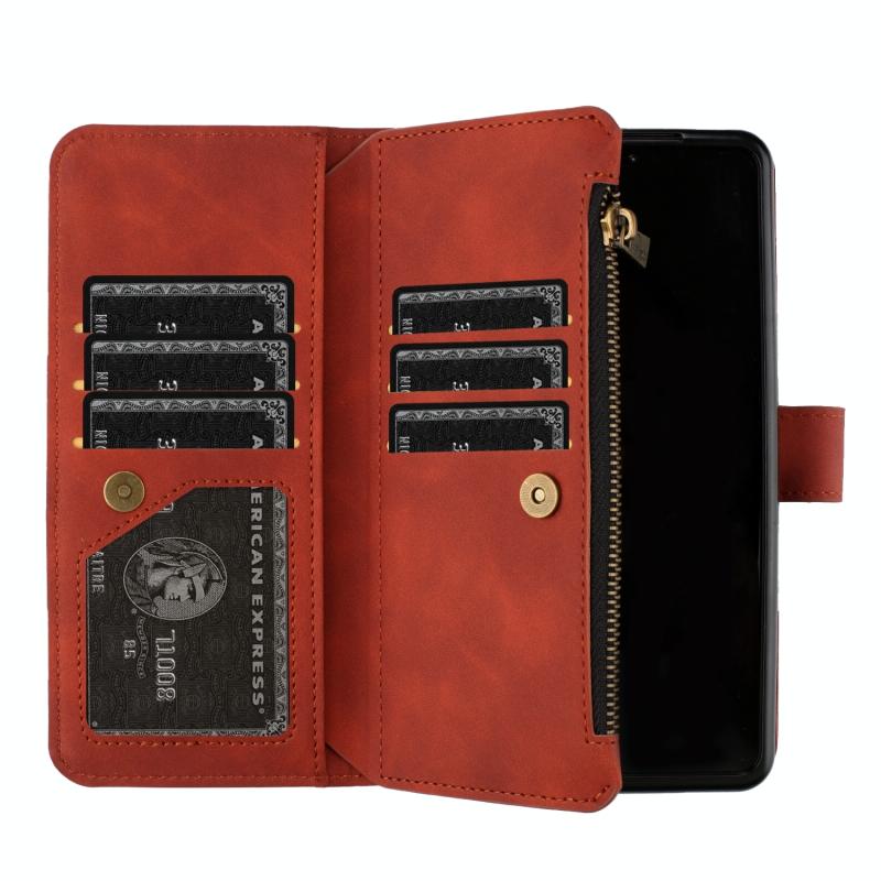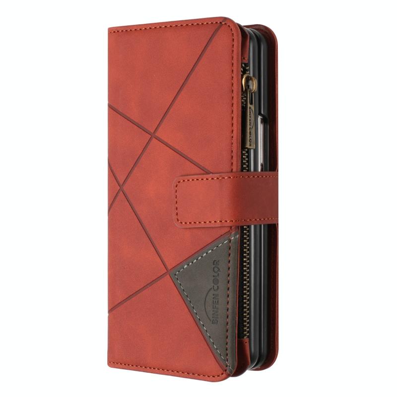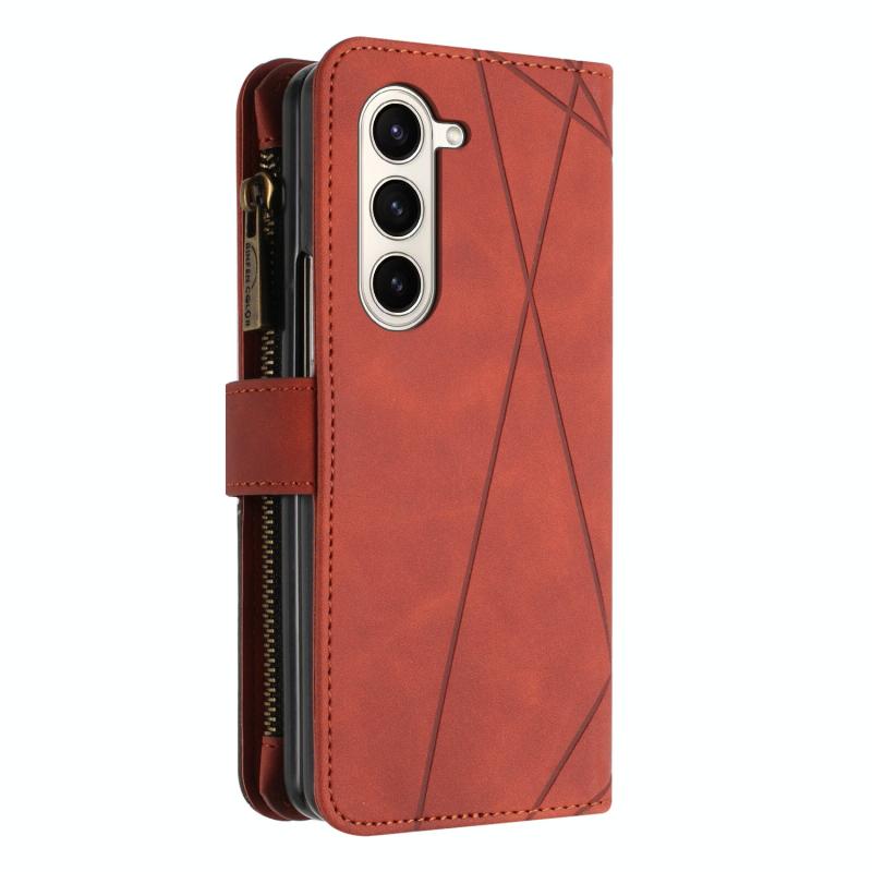 For Samsung Galaxy Z Fold5 Rhombus Texture Zipper Wallet Leather Phone Case(Brown)