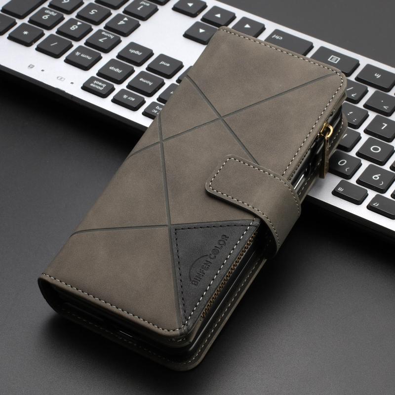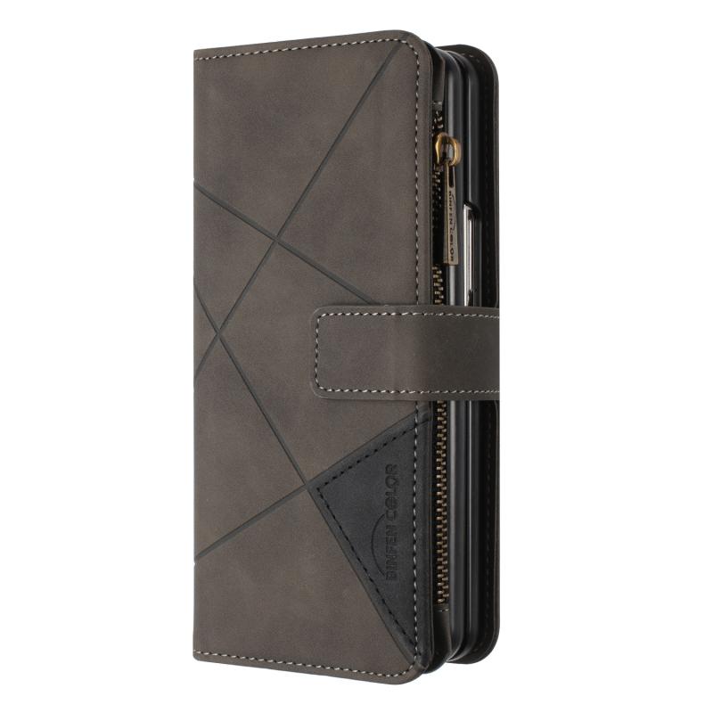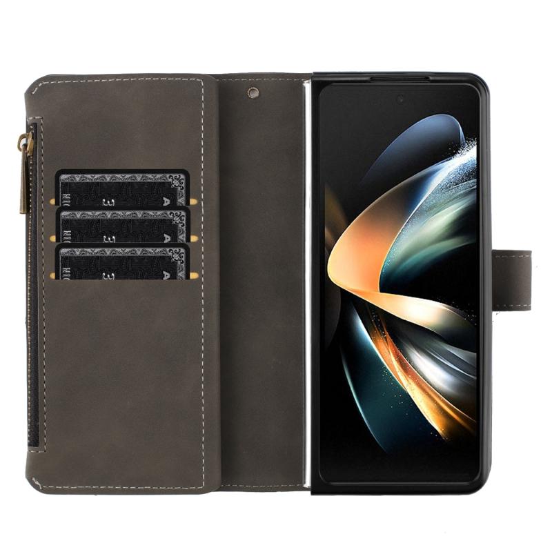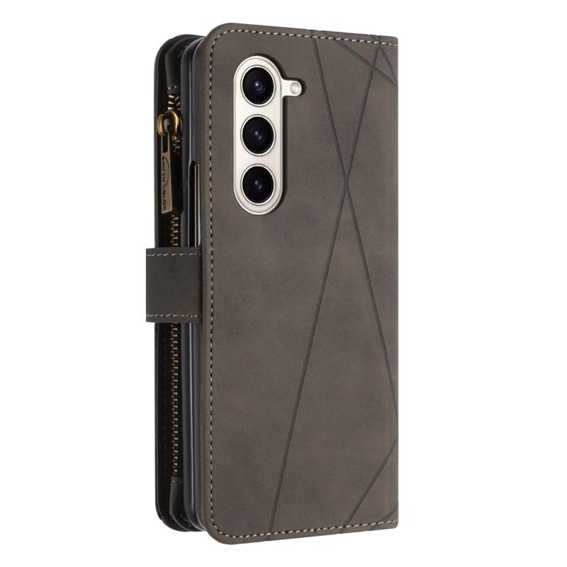 For Samsung Galaxy Z Fold5 Rhombus Texture Zipper Wallet Leather Phone Case(Grey)