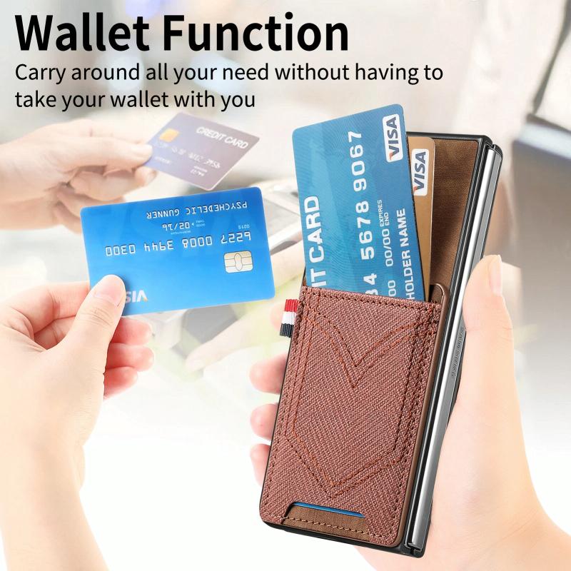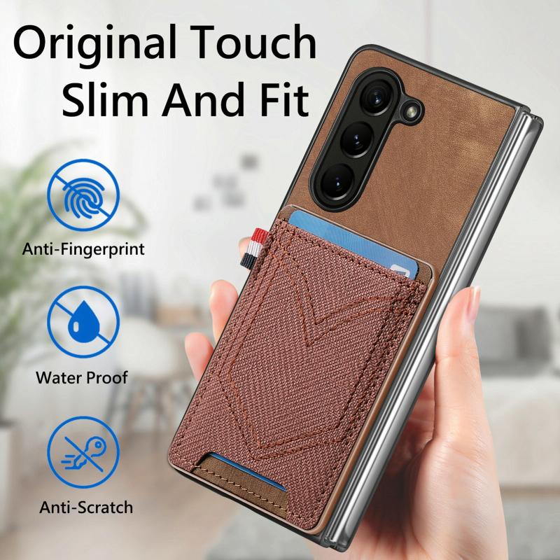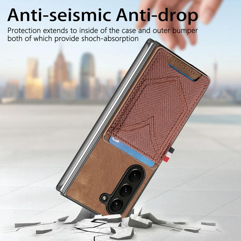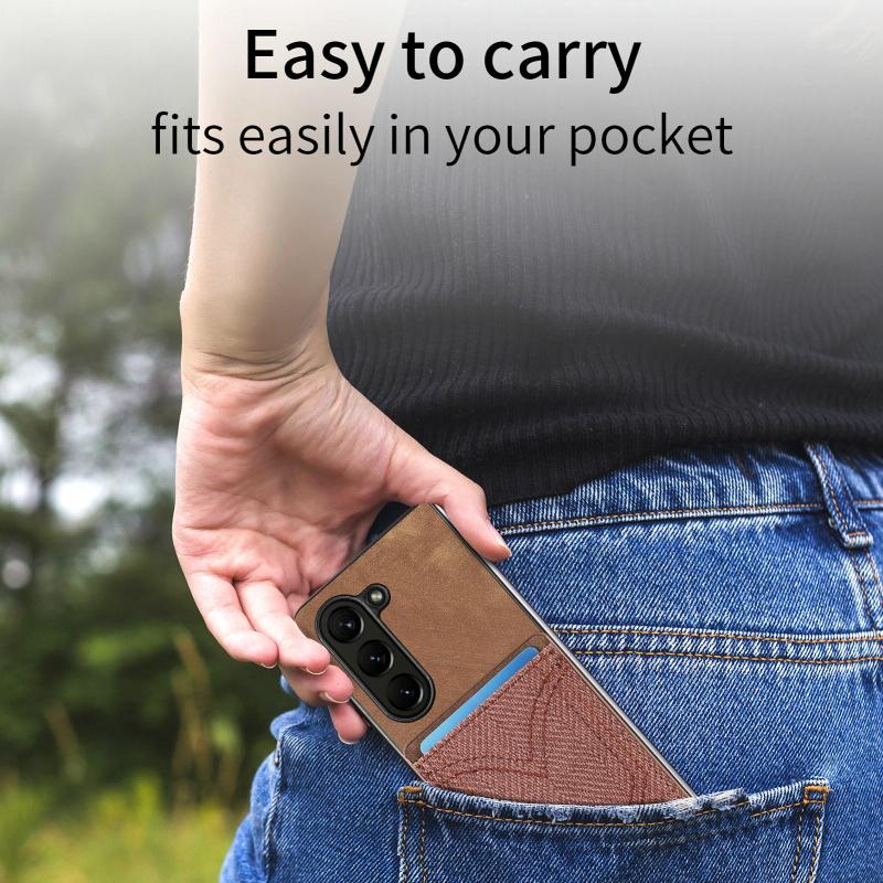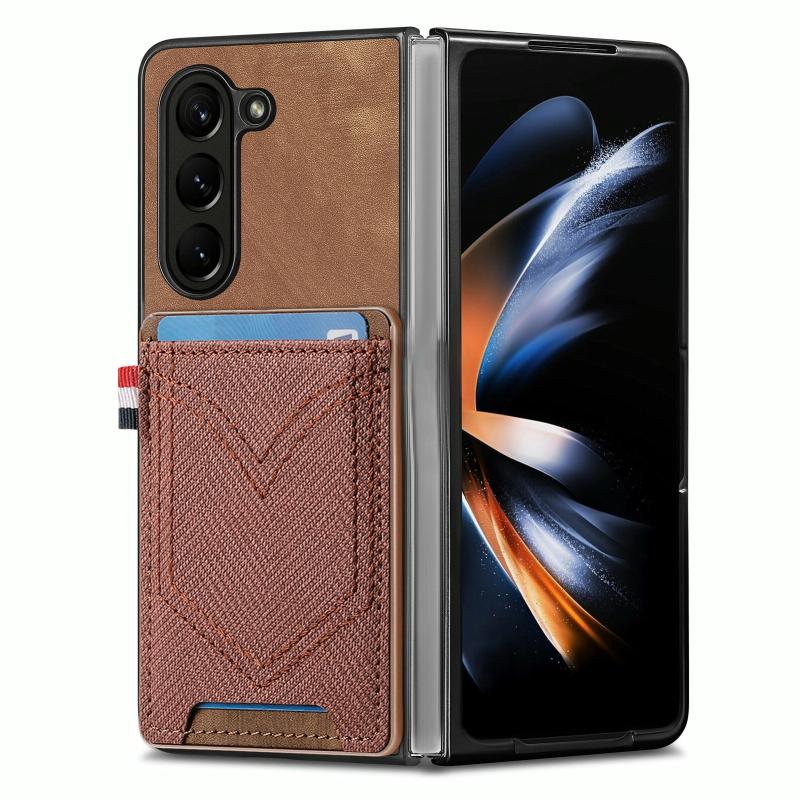 For Samsung Galaxy Z Fold5 Skin-feel Solid Color Back Cover Denim Card Phone Case(Brown)