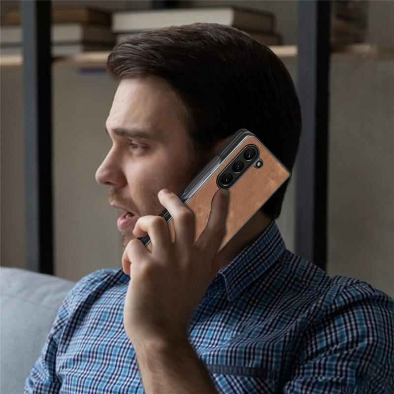 For Samsung Galaxy Z Fold5 Skin-feel Solid Color PU Back Cover Phone Case(Brown)