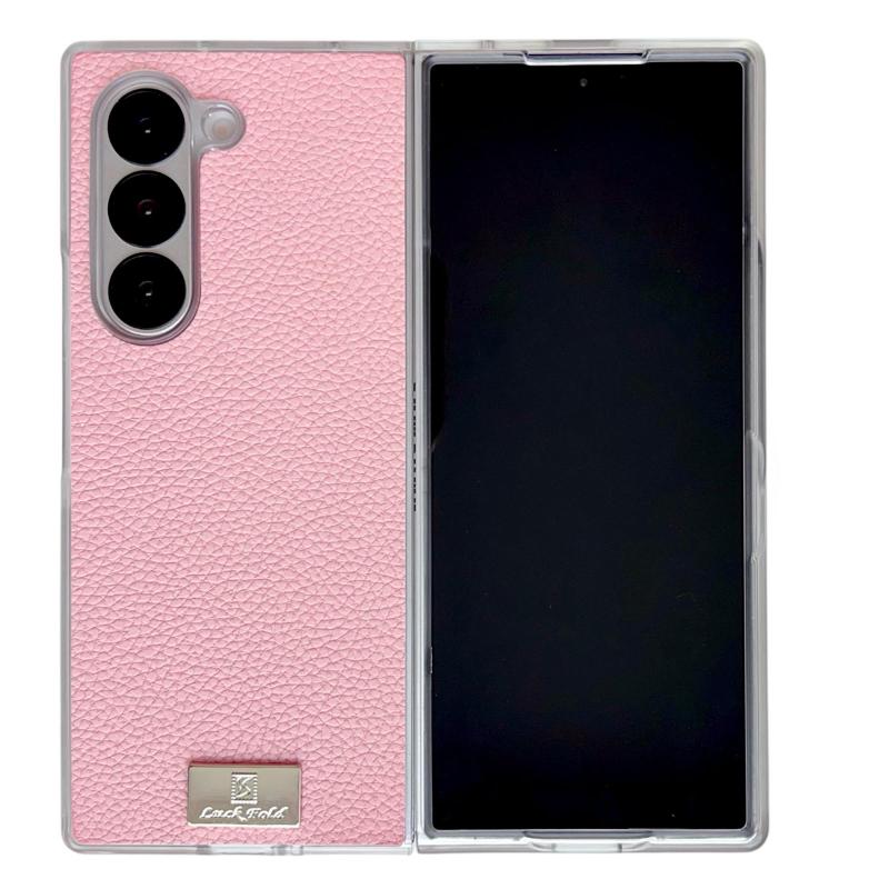 For Samsung Galaxy Z Fold5 Transparent Edge Litchi Texture Phone Case(Pink)