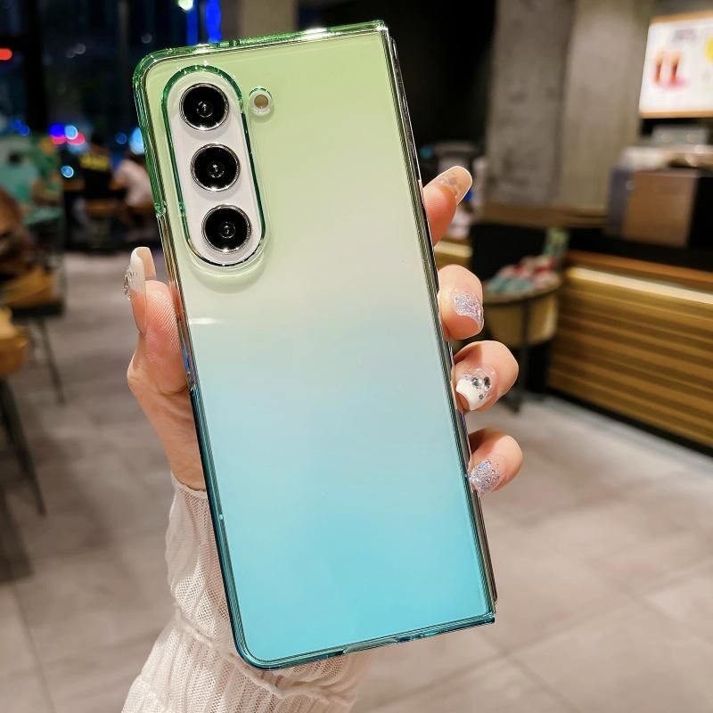 For Samsung Galaxy Z Fold5 Two Color Gradient Translucent Phone Case(Green+Blue)
