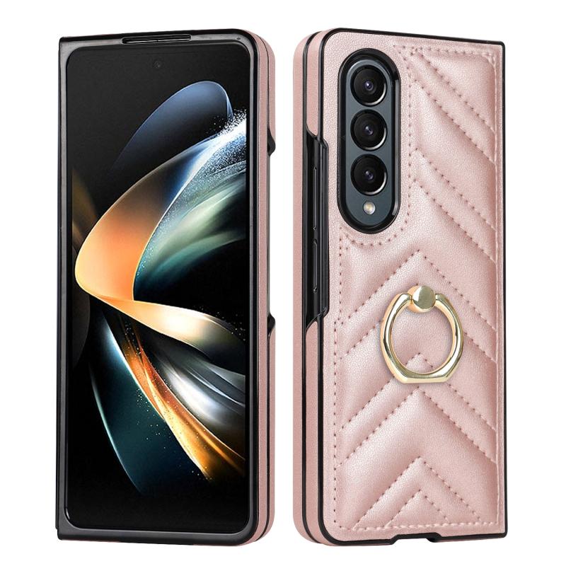 For Samsung Galaxy Z Fold5 V-shaped Folding Phone Case with Rotating Ring(Rose Gold)