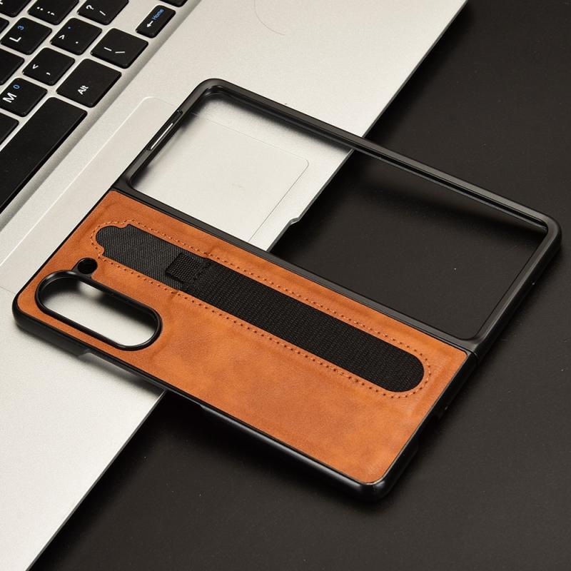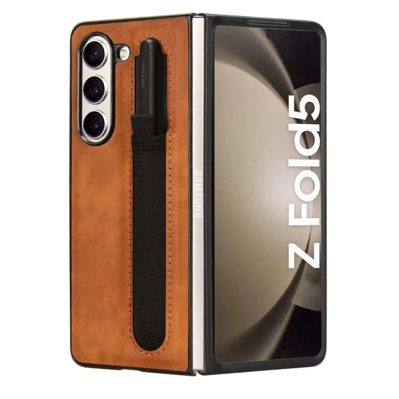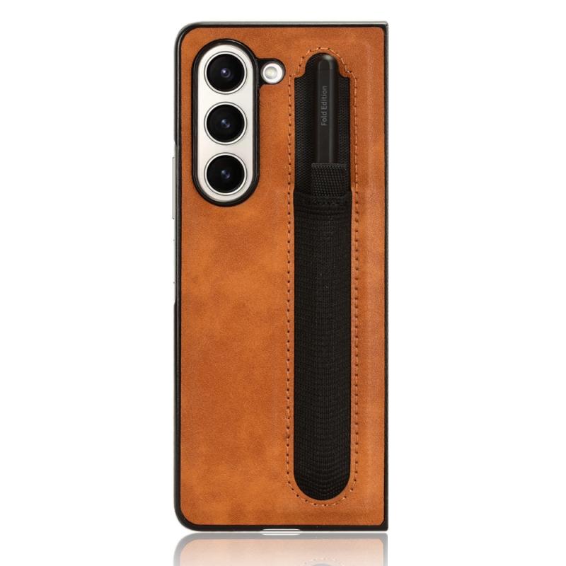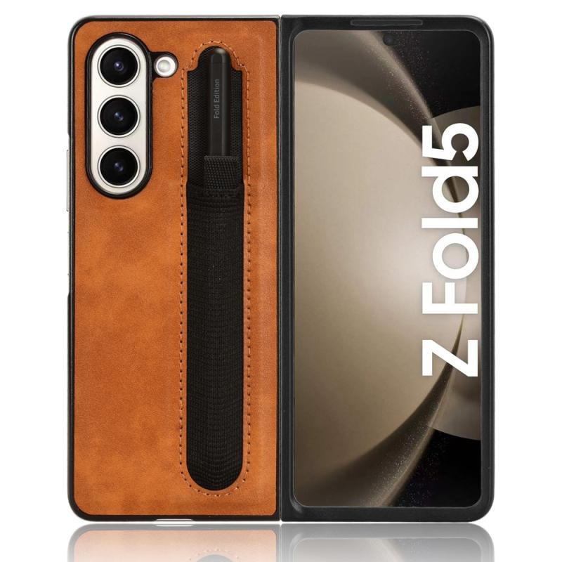 For Samsung Galaxy Z Fold5 Vintage Texture Phone Case with Pen Slot(Brown)