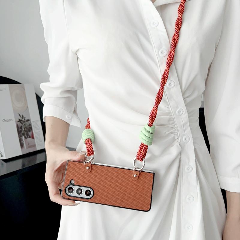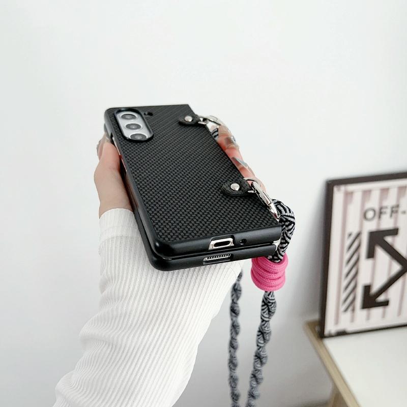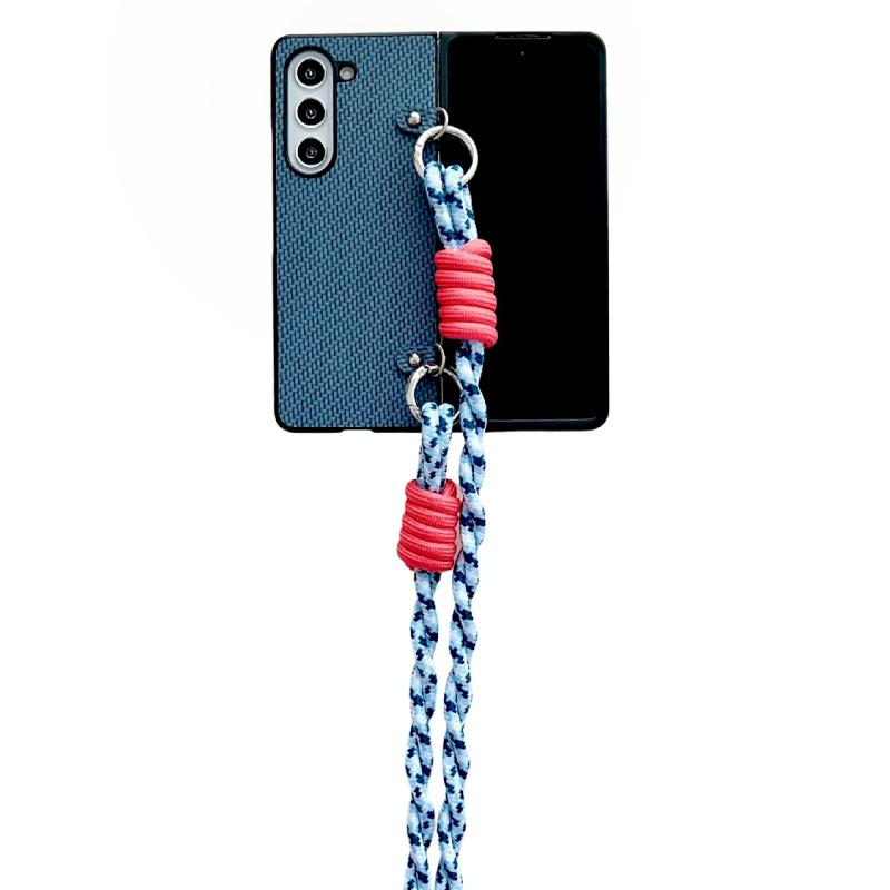 For Samsung Galaxy Z Fold5 Woven Texture Phone Case With Lanyard(Blue)