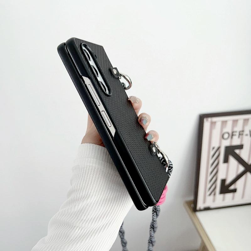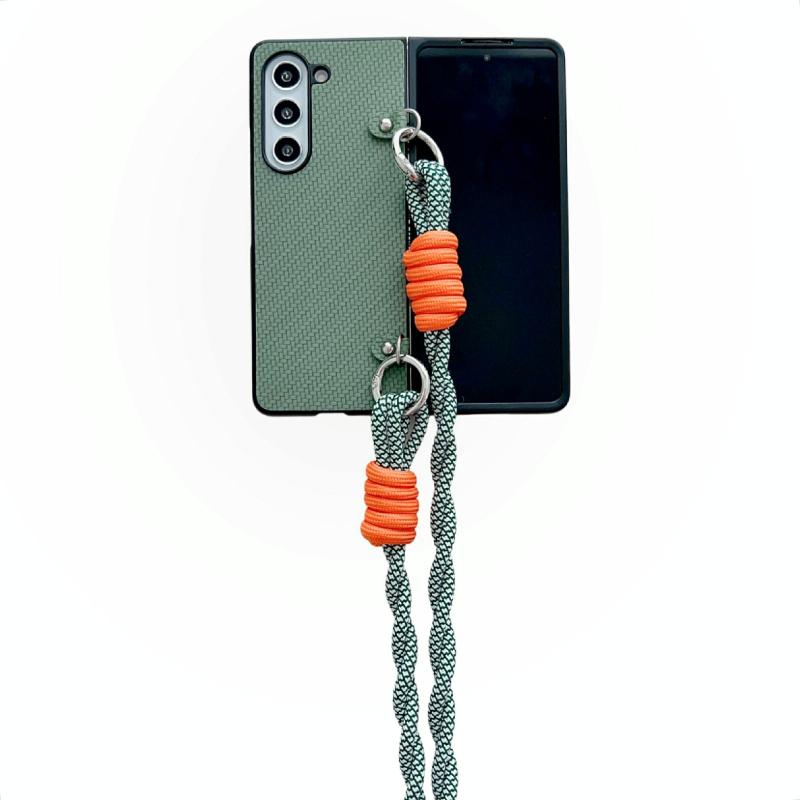 For Samsung Galaxy Z Fold5 Woven Texture Phone Case With Lanyard(Green)
