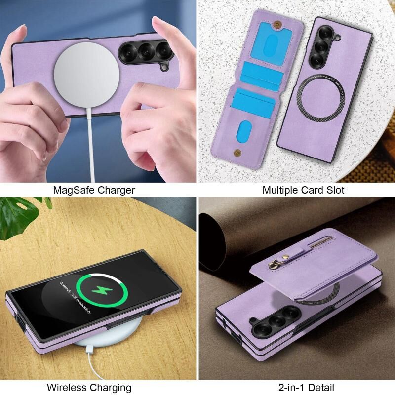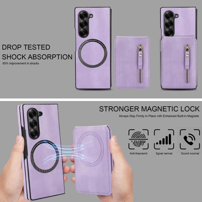 For Samsung Galaxy Z Fold5 Zipper Wallet Split MagSafe Leather Back Phone Case(Purple)