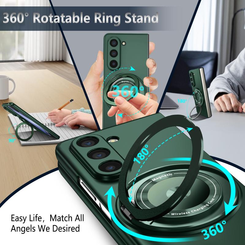 For Samsung Galaxy Z Fold6 360 Rotation Ring Holder MagSafe Shockproof PC Phone Case(Dark green)