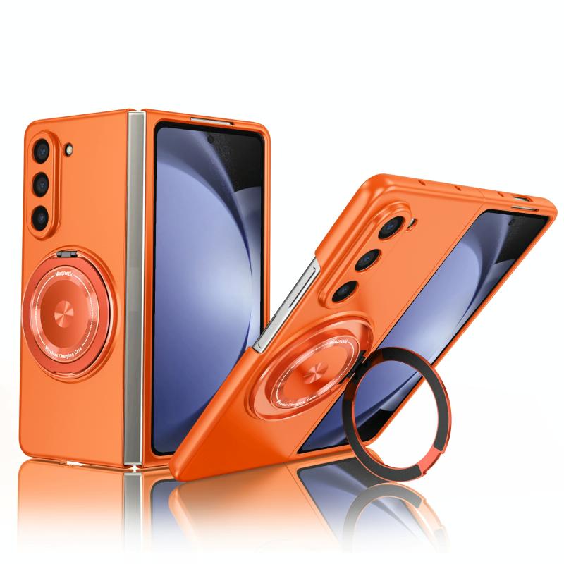 For Samsung Galaxy Z Fold6 360 Rotation Ring Holder MagSafe Shockproof PC Phone Case(Orange)