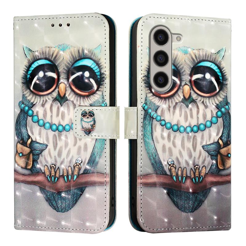 For Samsung Galaxy Z Fold6 3D Painting Horizontal Flip Leather Phone Case(Grey Owl)