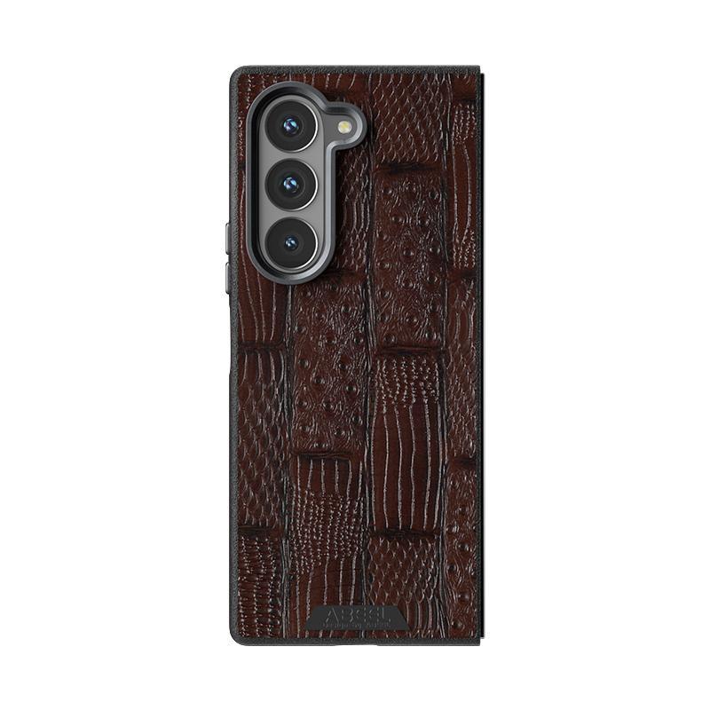 For Samsung Galaxy Z Fold6 5G ABEEL Beast Pattern 6D Micro-Embossed MagSafe Genuine Leather Phone Case(Brown)