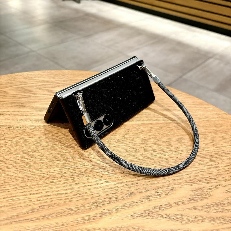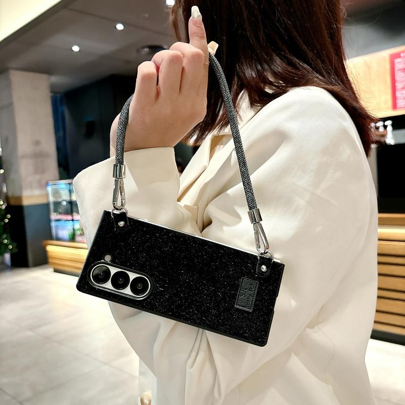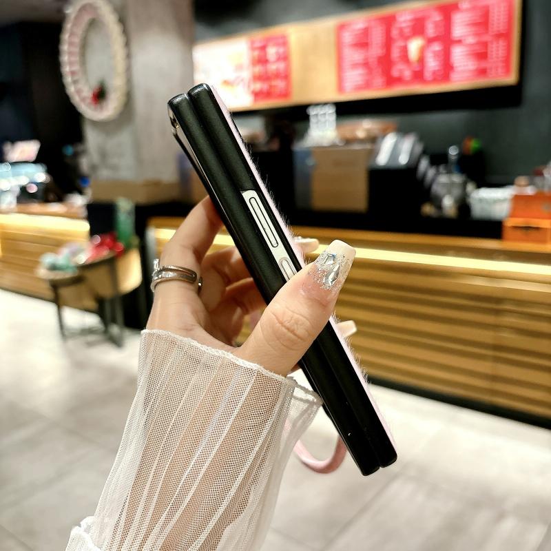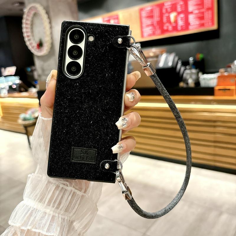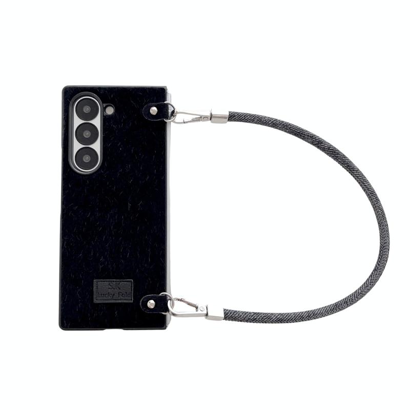 For Samsung Galaxy Z Fold6 5G Comfortable Short Plush Full Coverage Phone Case with Wrist Strap(Black)